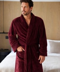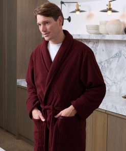 Savile Row Men’s Nightwear Burgundy Super Soft Waffle Effect Dressing Gown | Burgundy