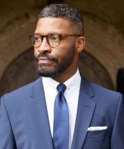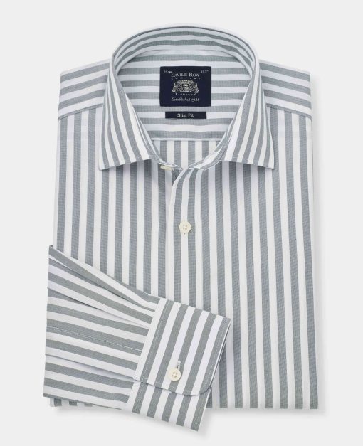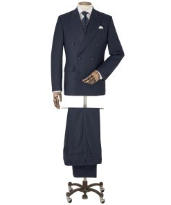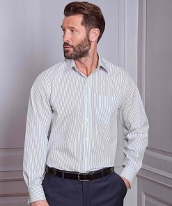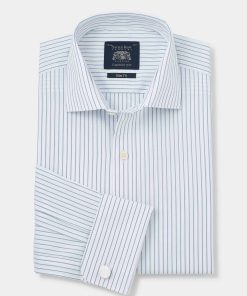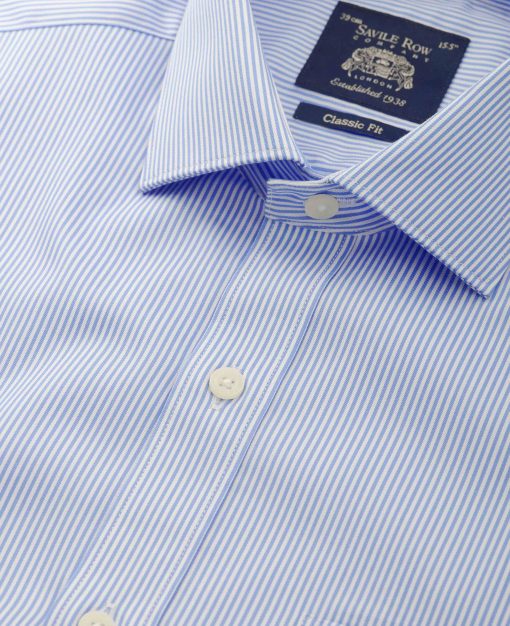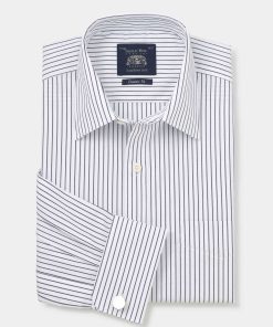 Savile Row Men’s Navy White Stripe Cotton Classic Fit Formal Shirt – Double Cuff | Navy