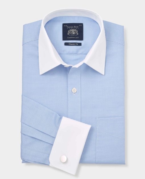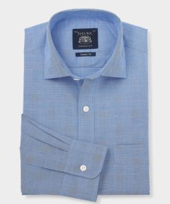 Savile Row Men’s Navy Cotton Prince Of Wales Check Classic Fit Formal Shirt – Single Cuff | Navy