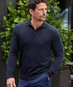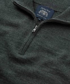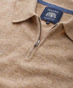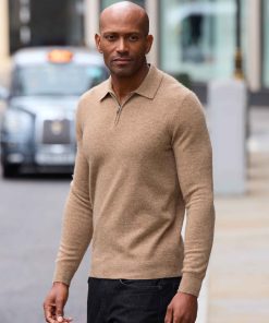 Savile Row Men’s Casual Oatmeal Merino Wool Cashmere Zip Neck Long Sleeve Polo Shirt | Oatmeal