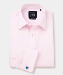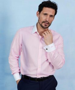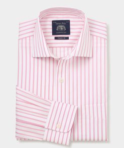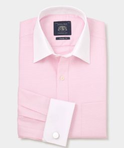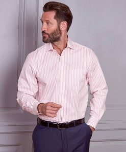 Savile Row Men’s Pink White Stripe Cotton Classic Fit Formal Shirt – Single Cuff | Pink