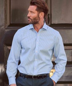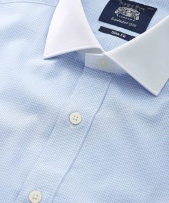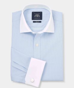 Savile Row Men’s Sky Blue Cotton Gingham Check Slim Fit Winchester Formal Shirt – Double Cuff | Sky