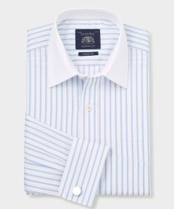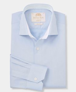 Savile Row Men’s Sky Blue Two-ply Cotton Slim Fit Gold Label Formal Shirt – Single Cuff | Sky