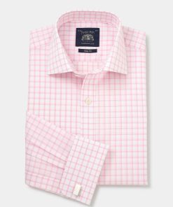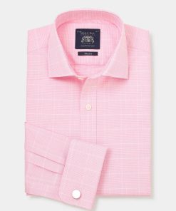 Savile Row Men’s Pink White Cotton Prince Of Wales Check Slim Fit Formal Shirt – Double Cuff | Pink