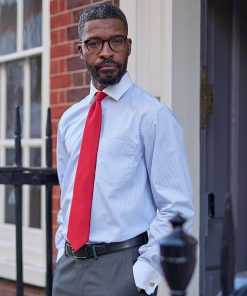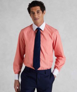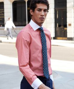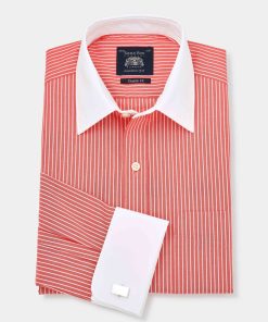 Savile Row Men’s Red White Reverse Stripe Cutaway Collar Slim Fit Formal Shirt – Double Cuff | Red