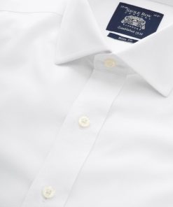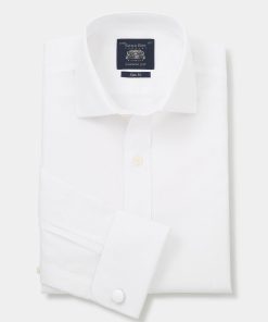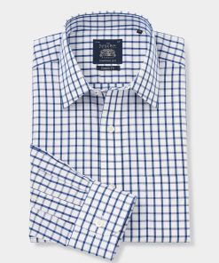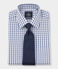 Savile Row Men’s White Blue Check Classic Fit Non-iron Formal Shirt – Single Cuff | White