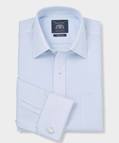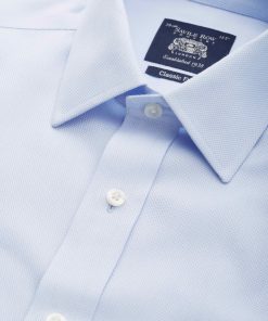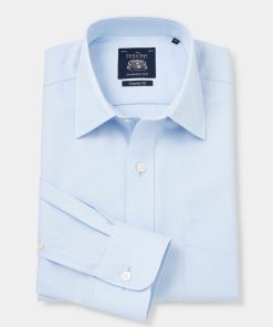 Savile Row Men’s Sky Blue Twill Classic Fit Non-iron Formal Shirt – Single Cuff | Sky