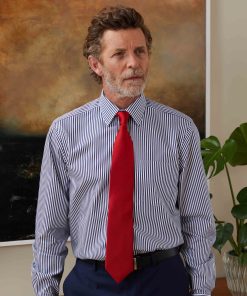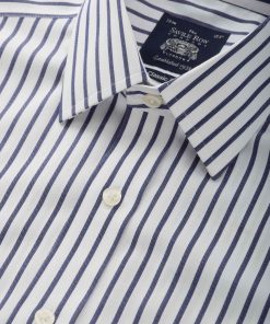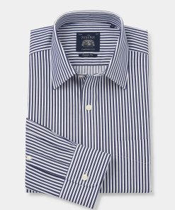 Savile Row Men’s Navy White Stripe Classic Fit Non-iron Formal Shirt – Single Cuff | Navy