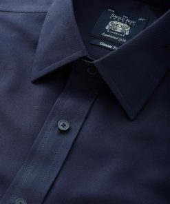 Savile Row Men’s Navy Fine Twill Classic Fit Non-iron Formal Shirt – Single Cuff | Navy