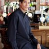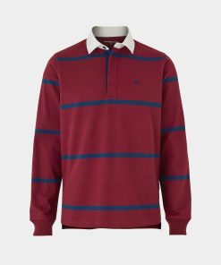 Savile Row Men’s Casual Burgundy Navy Stripe Heavyweight Cotton Jersey Rugby Shirt | Burgundy