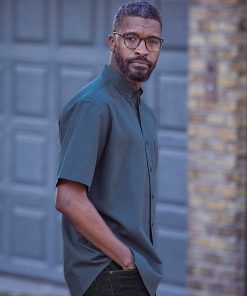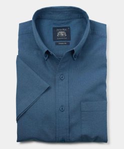 Savile Row Men’s Dark Blue Linen Cotton Classic Fit Button-down Short Sleeve Casual Shirt | Dark