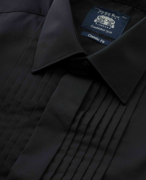 An elegant addition to your formalwear, this men’s black tuxedo shirt comes with an eye-catching pleated fly front that’s sure to steal the show. Crafted from cotton with classy double cuffs, it’s cut to a classic fit shape that’s spacious and comfortable.