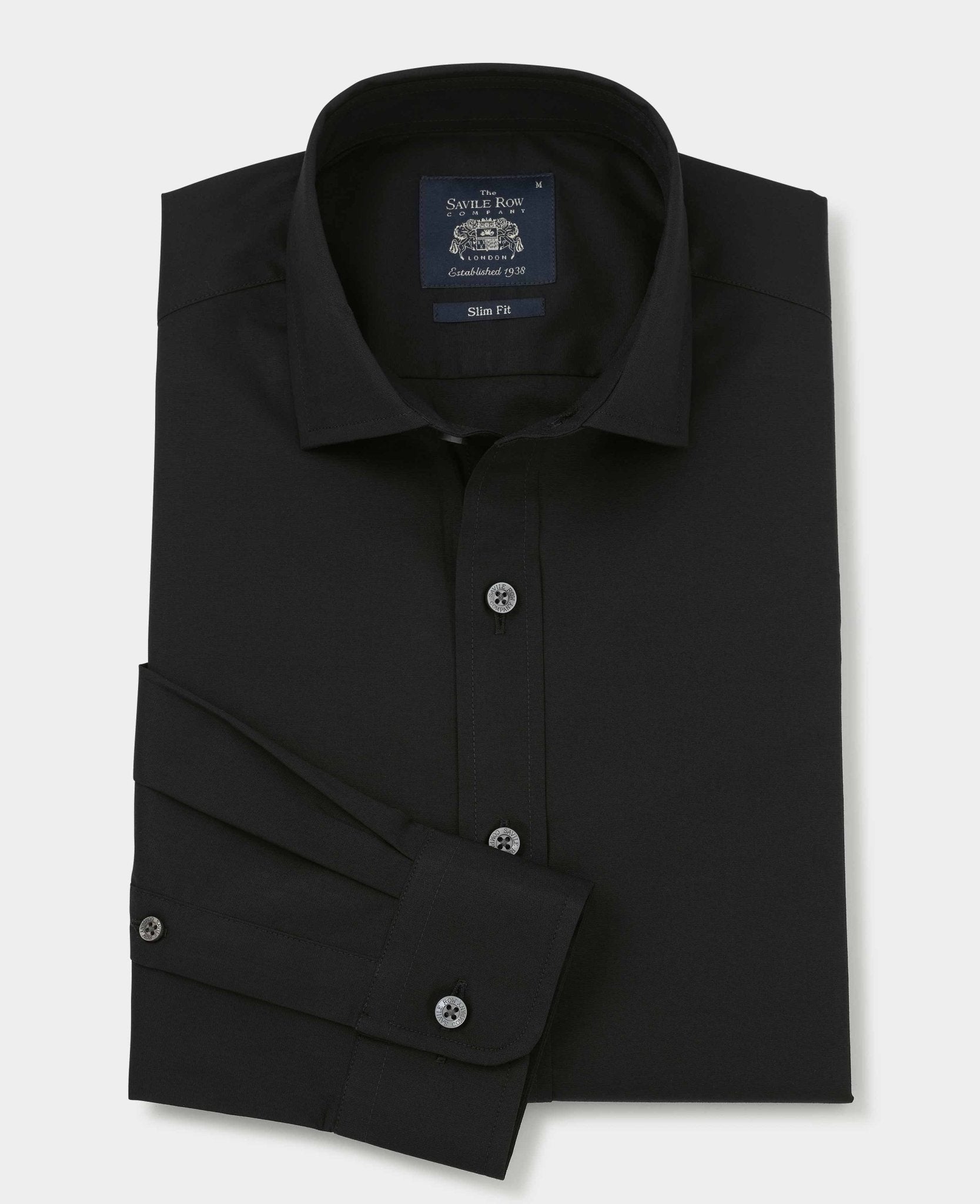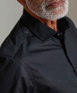 We’ve added a hint of stretch to this men’s cotton shirt to allow better ease of movement and all-day comfort – whether you’re at a wedding or an important business event. You’ll find our usual curl-resistant collar, plus single cuffs and back darts.