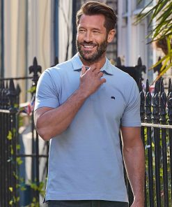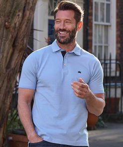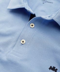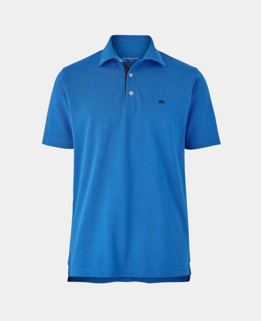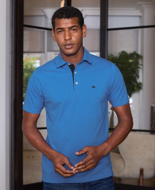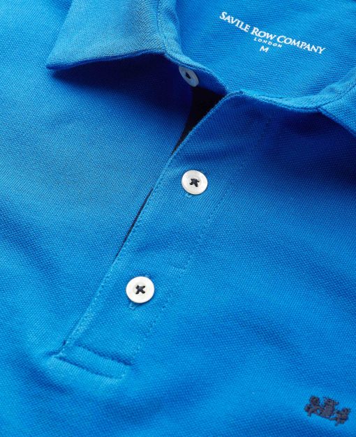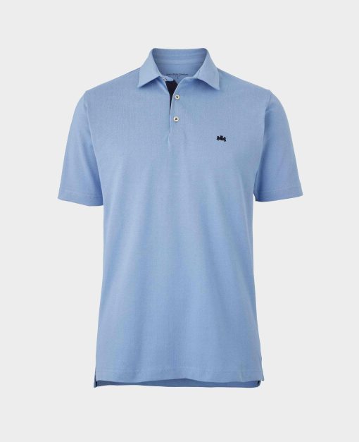 Our blue short-sleeved polo is a bestseller for a reason. Made from breathable cotton pique, it keeps you cool and comfortable no matter the season. The classic fit and short sleeves offer relaxed versatility, while refined details like a self-fabric two-piece collar, contrast navy inner placket, cross-stitched buttons, crest embroidery and herringbone side slits elevate it above the everyday. Finished with a smart two-button placket and easy-care machine wash.