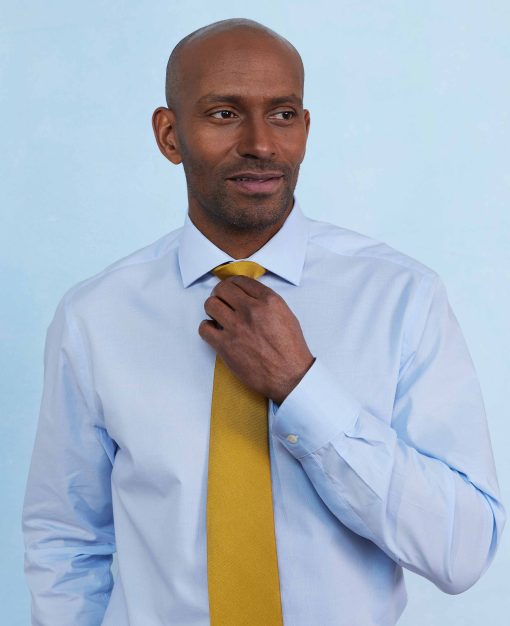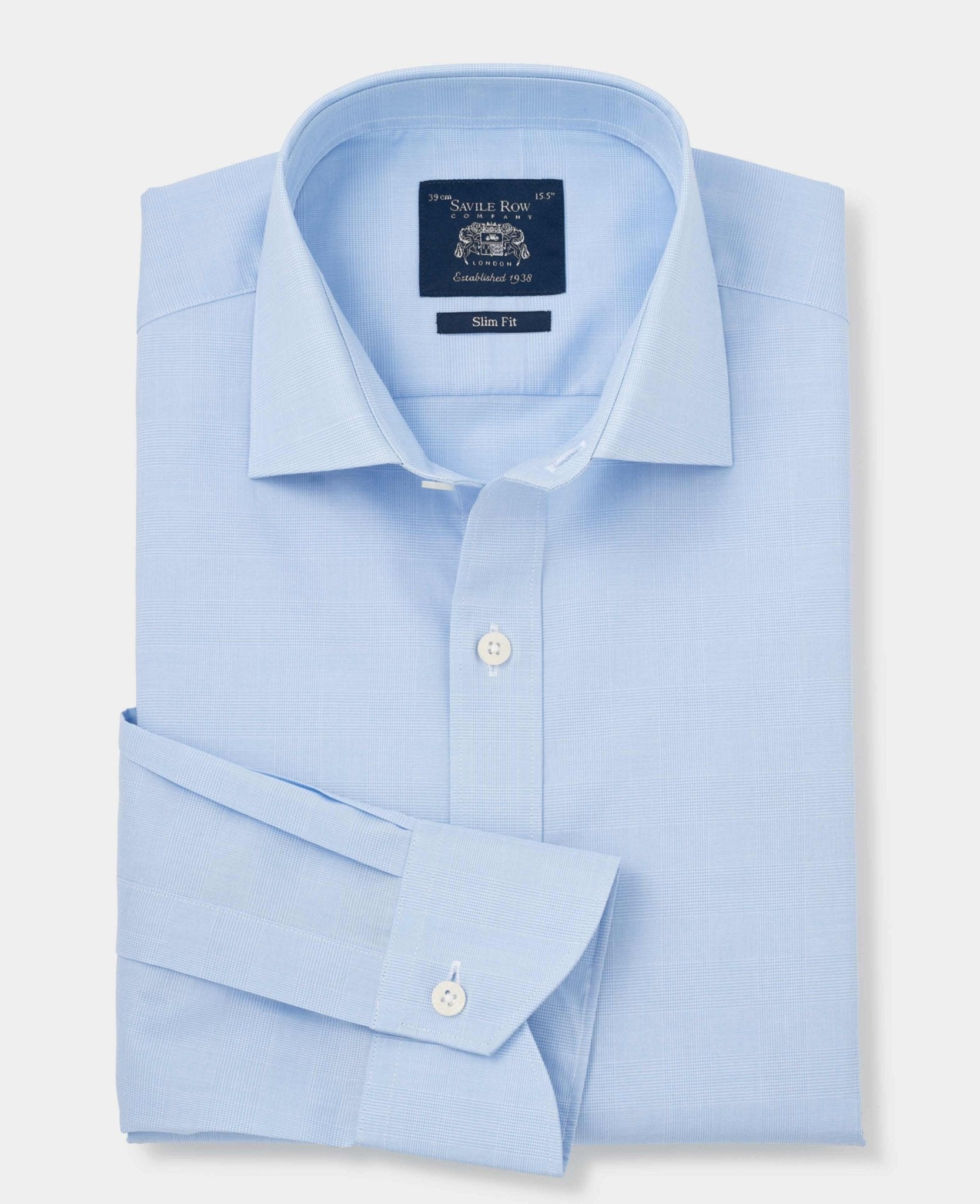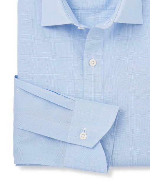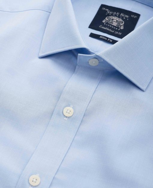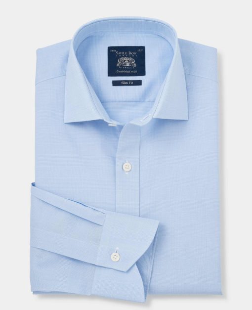 This blue Prince of Wales check formal shirt offers a fresh take on a classic pattern, combining sharp style with modern comfort. Made from high-quality cotton poplin, it’s lightweight, breathable and smooth against the skin, making it a perfect choice for all-day wear. The Prince of Wales check in blue adds a touch of timeless charm, while the slim fit design creates a sleek, tailored silhouette that flatters your frame. Finished with single cuffs for a clean, streamlined look.