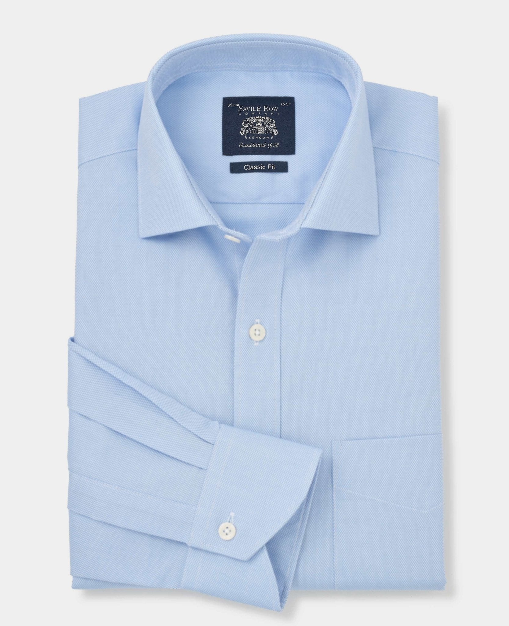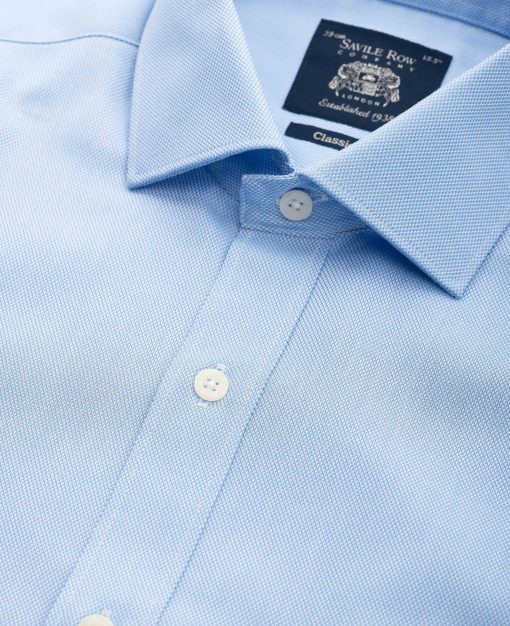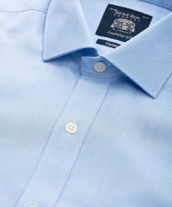 Crafted from versatile cotton dobby, this men’s formal shirt features intricate geometric patterns and a distinctive raised texture that adds depth and quiet character to your formalwear. The dobby weave not only provides a unique three-dimensional effect but also enhances durability with its thicker threads, making it a robust and stylish choice. Designed in a classic fit with curved single cuffs, it offers a comfortable, timeless silhouette perfect for any occasion.