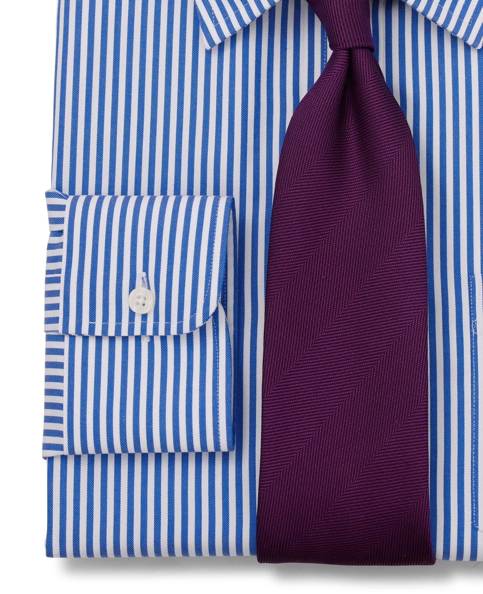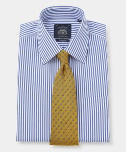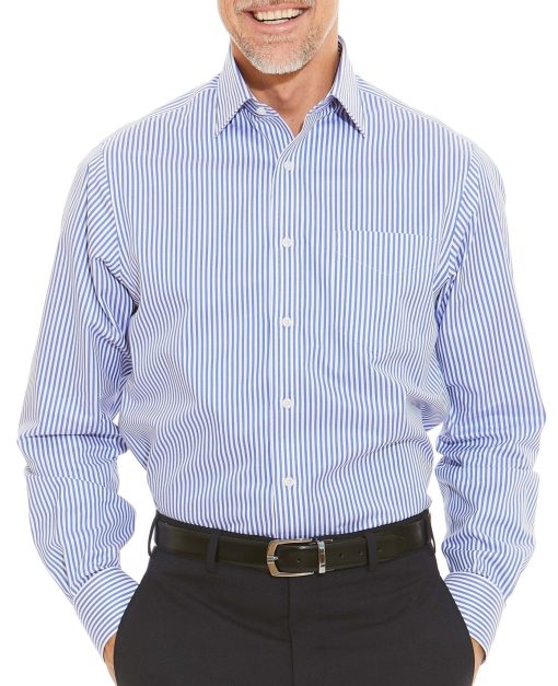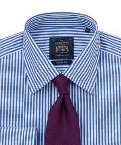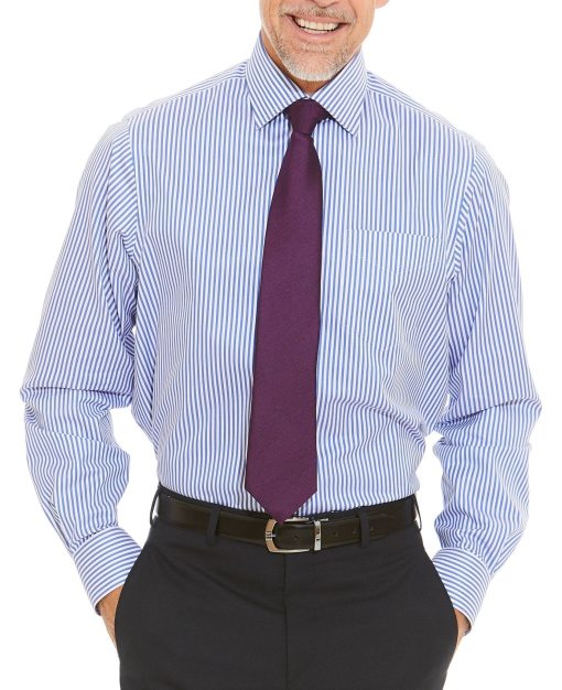Suitable for smart occasions, this classic non-iron shirt has been decorated with a crisp stripe that demands attention. Breathable and luxuriously soft, it features a curl-resistant Windsor collar, long tails and single cuffs.