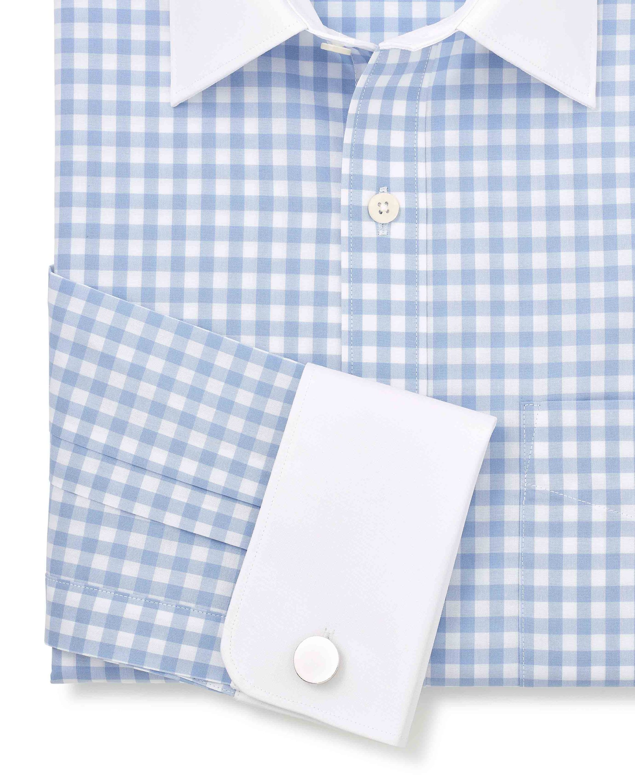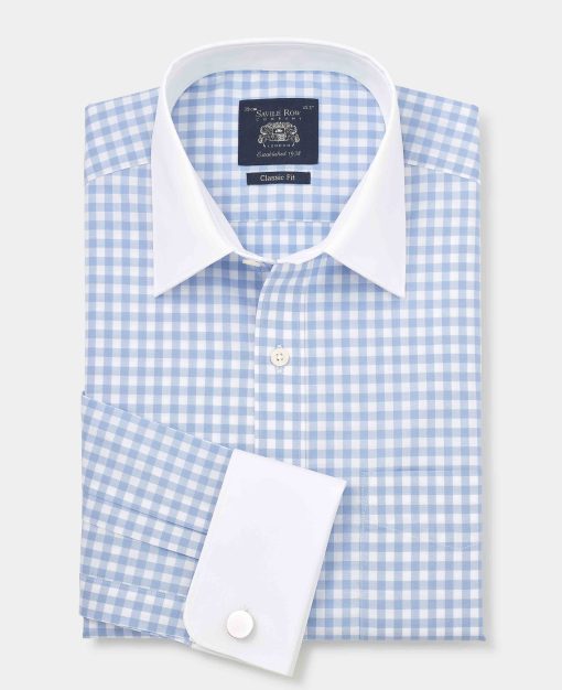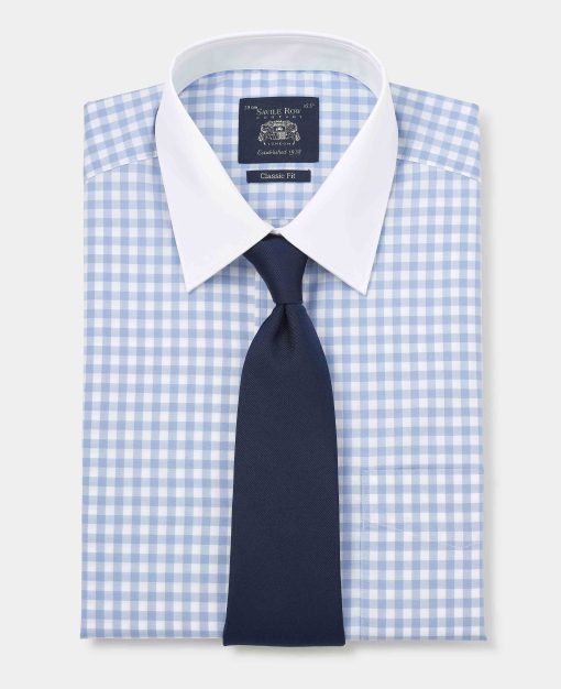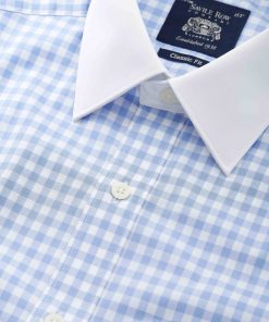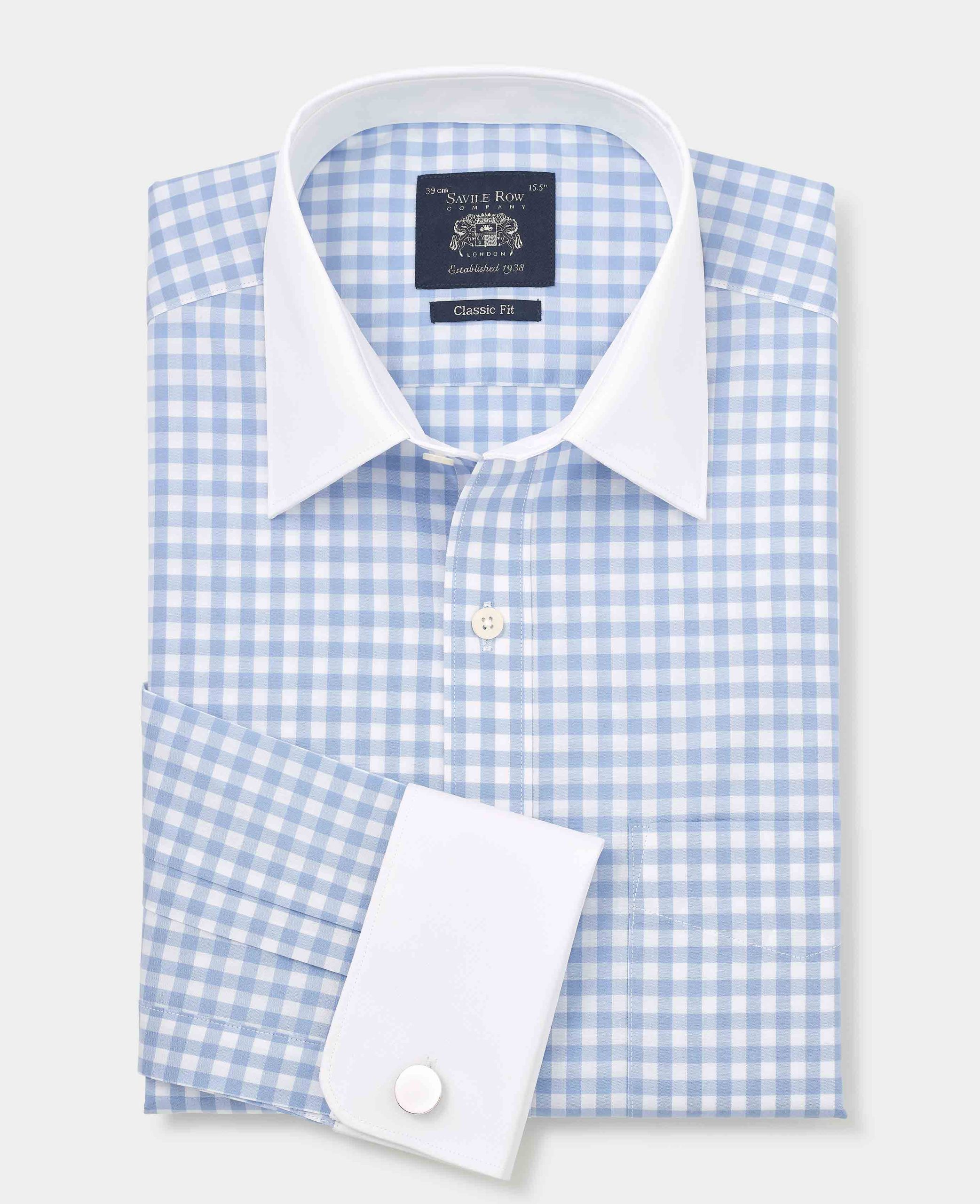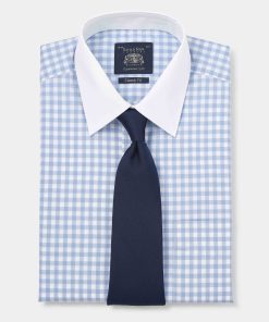 A refined take on a timeless classic, this blue and white gingham check Winchester formal shirt is designed for effortless elegance and superior comfort. Crafted from 100% BCI poplin cotton, it offers a soft, supple feel with an easy-iron finish for a consistently sharp look. The generously proportioned classic fit ensures all-day ease, while the split back yoke enhances movement and fit across the shoulders. Featuring a distinguished contrast white collar and double cuffs, along with a curl-resistant Windsor collar with integral and removable stays, it maintains a pristine shape. Thoughtful details like a left chest pocket, pucker-free French taped seams, and reinforced construction make this a smart, durable and sophisticated wardrobe staple.