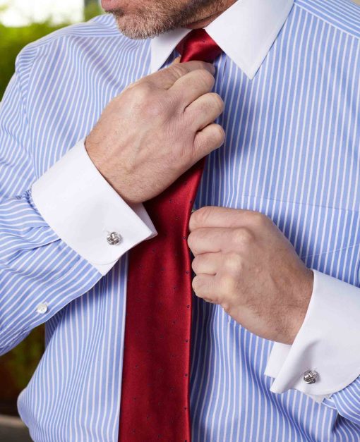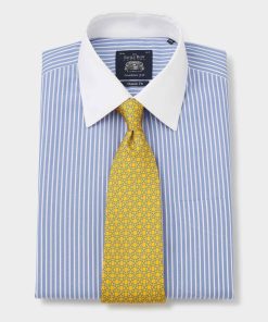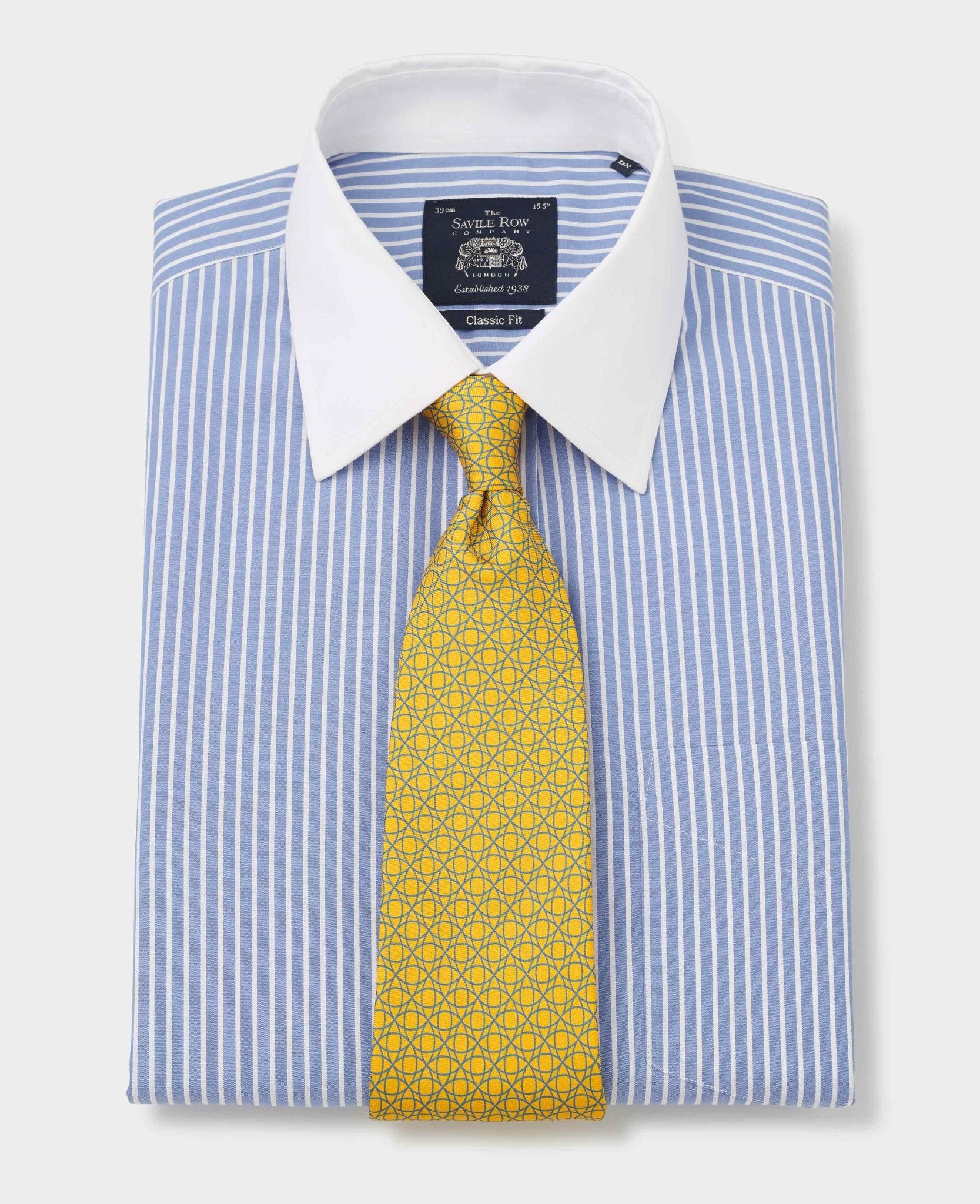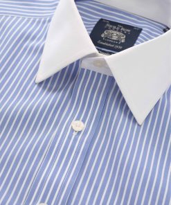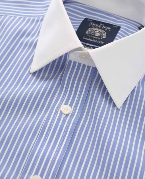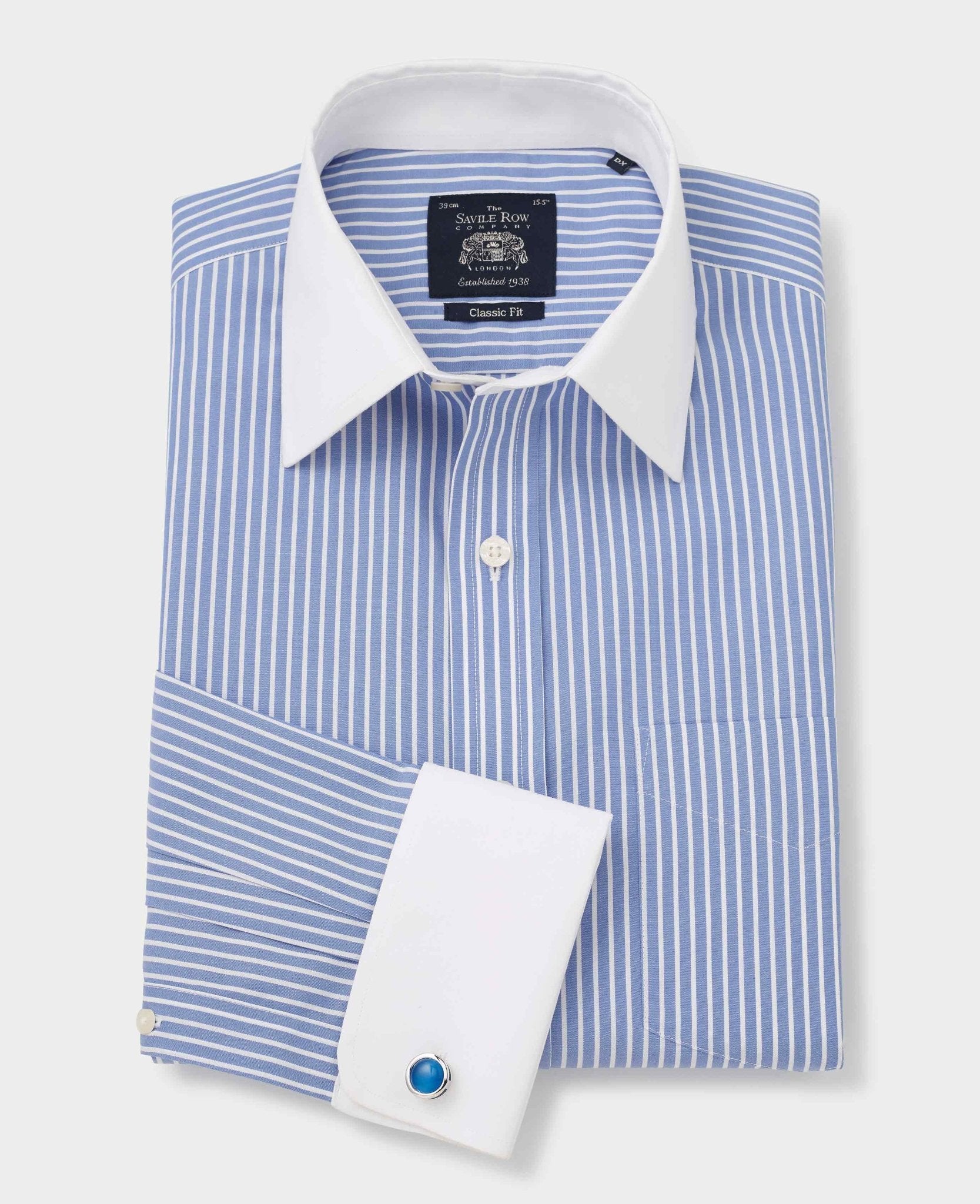 Our popular blue and white stripe shirt in a luxury non-iron fabric. Complete with white collar and cuffs. 100% cotton construction. The perfect choice for the office.