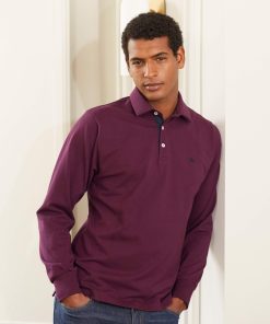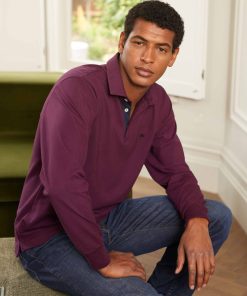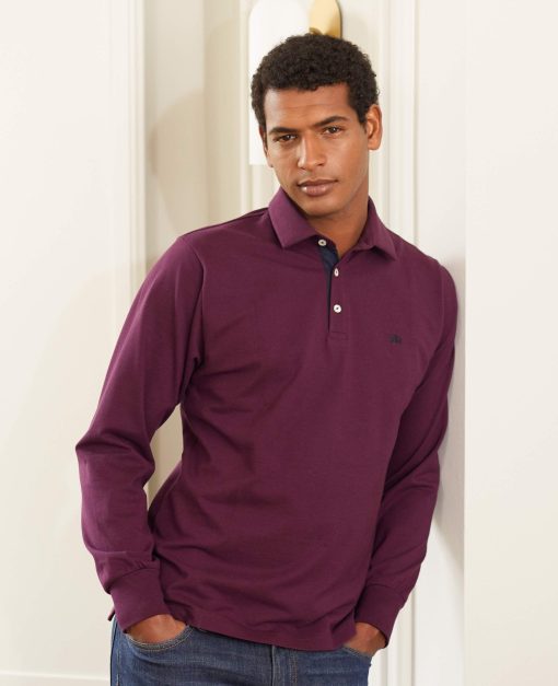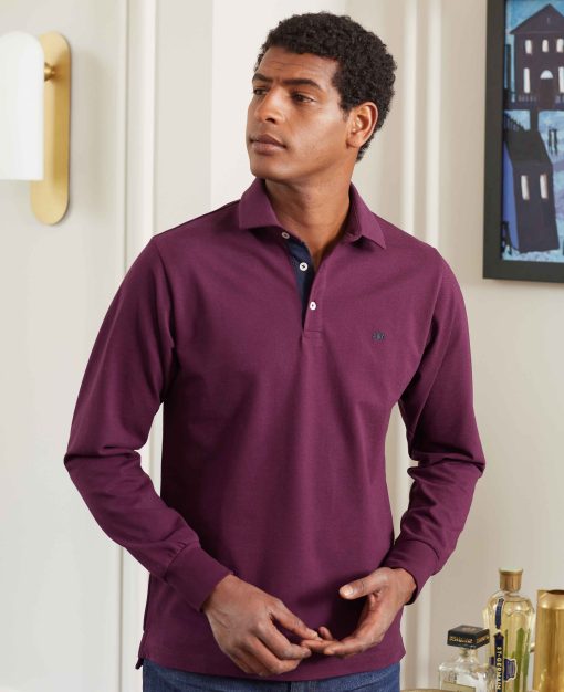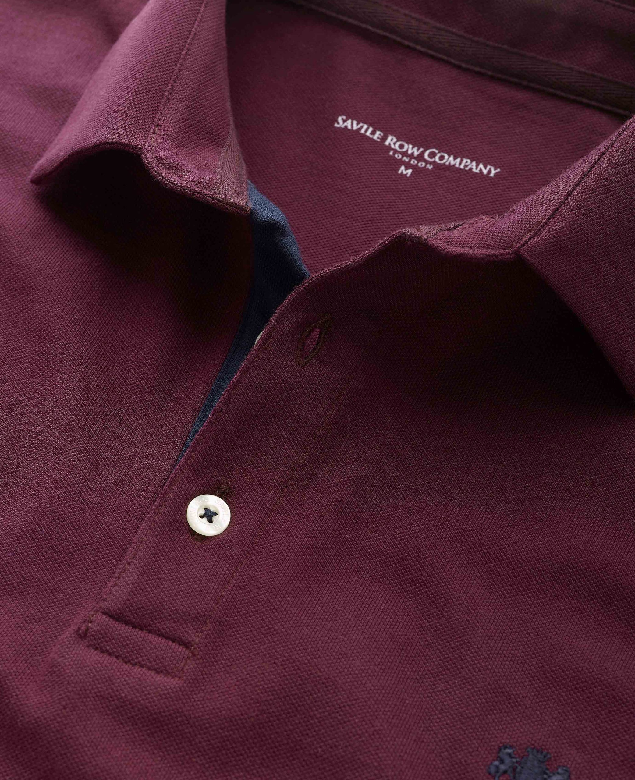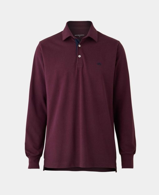 Savile Row Men’s Burgundy Long Sleeve Polo Shirt | Burgundy