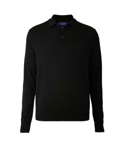 Refined yet versatile, this black knitted polo shirt is crafted from 12-gauge extra-fine non-mulesed Merino wool, offering unmatched softness and sophistication. The regular fit gently hugs the body for a tailored silhouette, while fully fashioned sleeves ensure a perfect, comfortable fit. With its breathable warmth and sleek design, this polo is the ultimate blend of casual and luxury – ideal for layering or wearing alone.