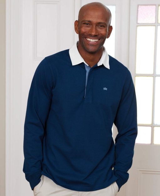 A stylish choice for casual days, our men’s rugby shirt, complete with a white twill two-piece collar, will give your outfits a timeless preppy feel. Not just nice to look at, the fabric is soft, weighty and gets better after every wash. You can wear it with jeans, chinos or shorts.