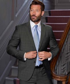 Step into timeless British style. This grey Prince of Wales check suit blends classic tailoring with just the right amount of personality. The traditional check pattern speaks to heritage and refinement, while the clean silhouette gives it a contemporary edge that turns heads for all the right reasons. Tailored to perfection, this men’s suit includes a single-breasted, two-button jacket with double back vents for comfort and mobility. The matching flat-front trousers feature a smart, straight-leg cut for a sharp, polished look.