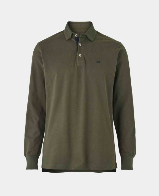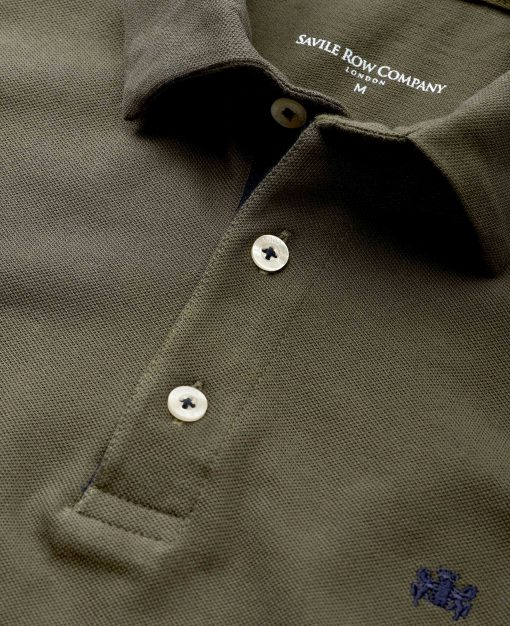Savile Row Men’s Khaki Cotton Pique Long Sleeve Polo Shirt | Khaki