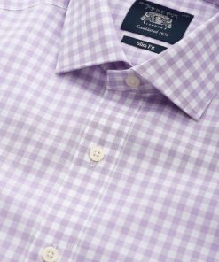 Smooth, soft and easy to iron, the cotton used for this shirt has been made in collaboration with the Better Cotton Initiative (BCI), a not-for-profit organisation that promotes better standards in cotton farming and practices. Decorated with a timeless gingham check and finished with a crisp cutaway collar, it’s an excellent addition to your formal rotation. This is the slim fit version of our bestselling style that can be worn with a variety of suit colours, from navy to grey, and a range of silk ties.