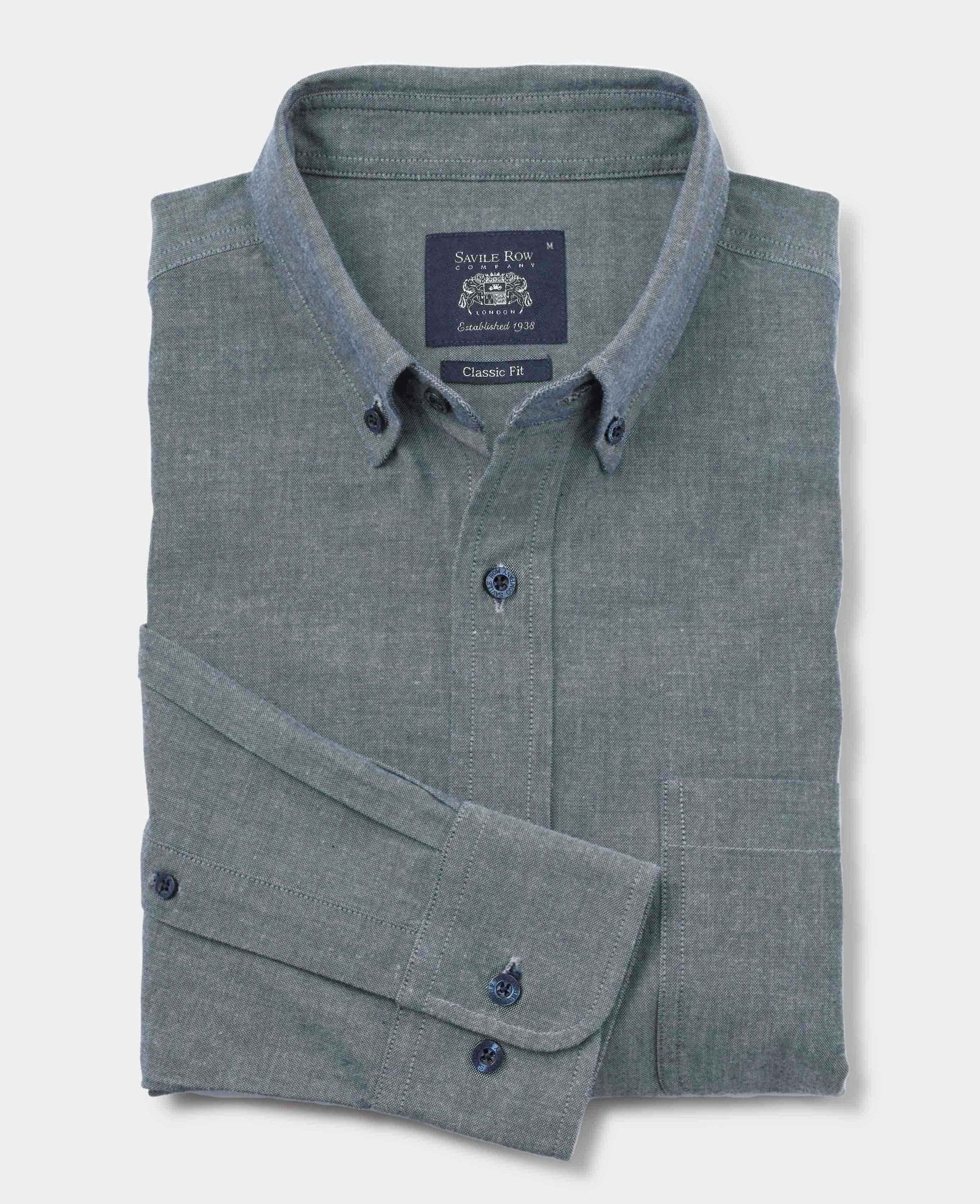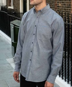 Our navy chambray Oxford shirt in a classic fit shape. Made from soft cotton with a button-down collar and single cuffs. A must-have for every smart-casual wardrobe, you can wear it with jeans, chinos or shorts. Roll up the sleeves for a slightly more relaxed ensemble.