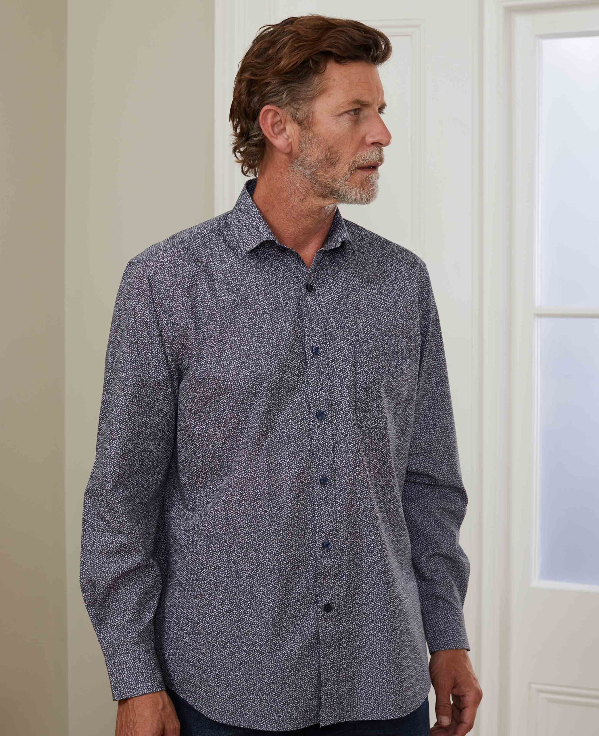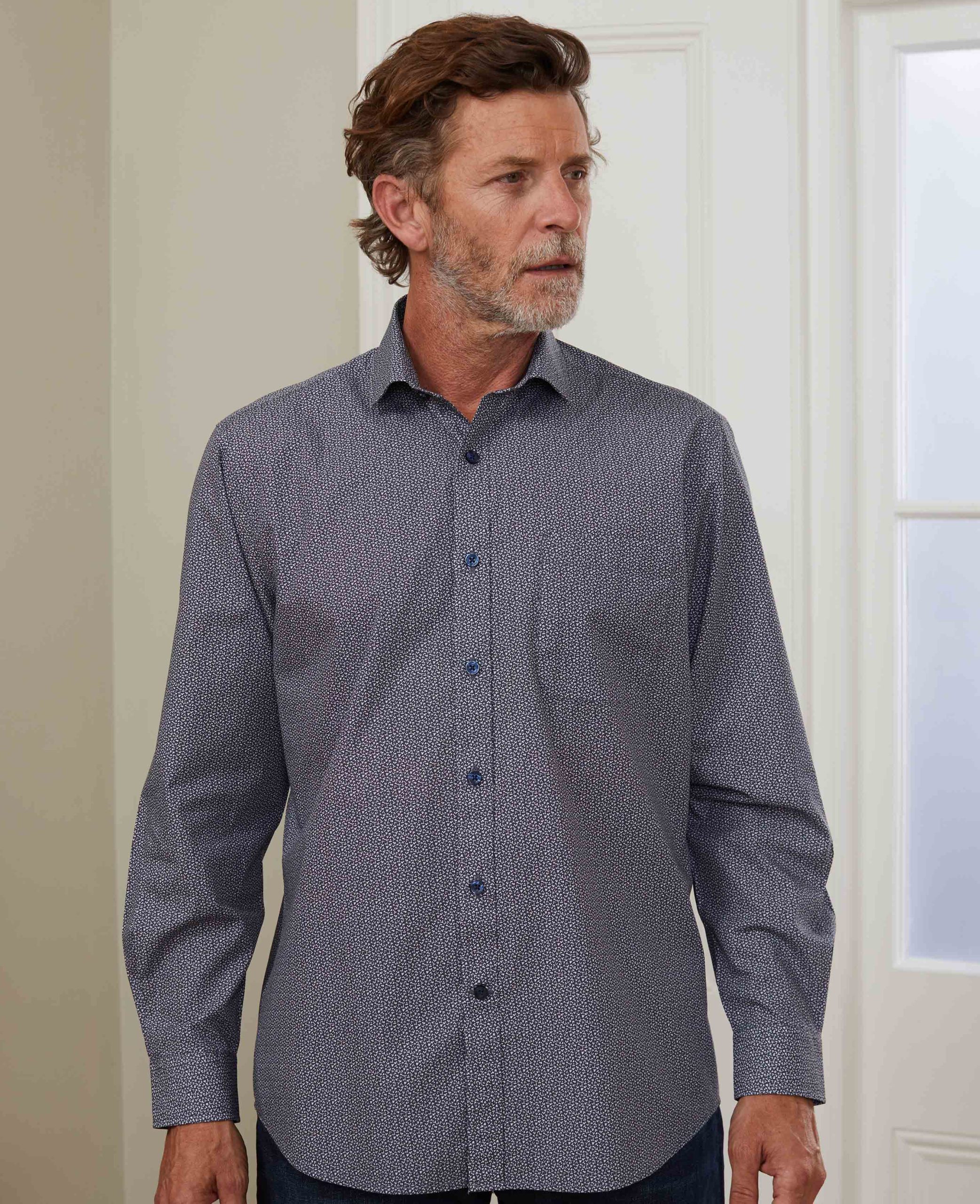 Decorated with a ditsy print, this men’s casual shirt is an excellent addition to your weekend wardrobe. It’s crafted from cotton and cut to the perfect length to allow you to wear it tucked in or out.