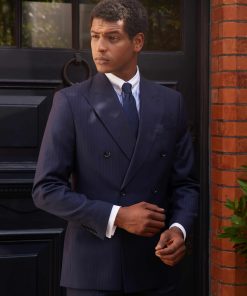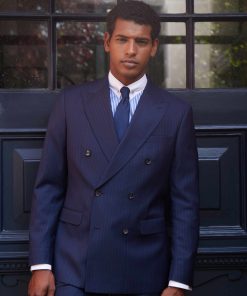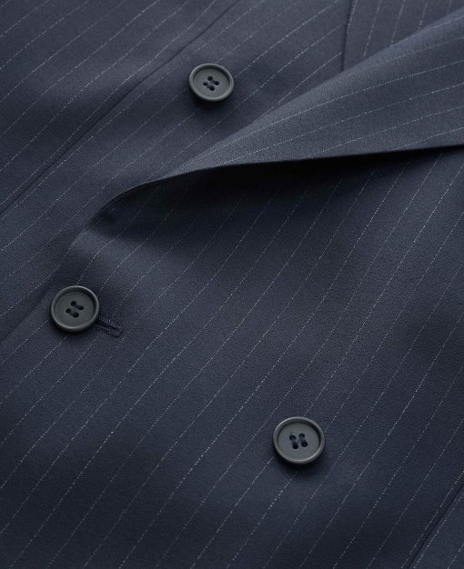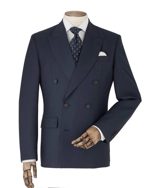 An elegant addition to your formalwear, this double-breasted jacket is made from a luxurious wool-blend which includes a hint of stretch for comfort. Decorated with stripes, it has a six-button front and double back vents. Wear yours with the matching trousers and finish the look with a crisp white shirt and patterned silk tie.