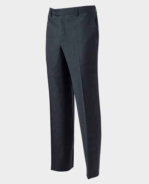 Decorated with a subtle Prince of Wales check and made from a slightly stretchy wool-blend fabric, these men’s suit trousers are comfortable, classic and smart. They’re tailored for a flattering straight fit but can be made slimmer on request.