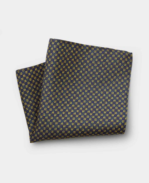 Savile Row Men’s Navy Yellow Chain Silk Pocket Square | Navy