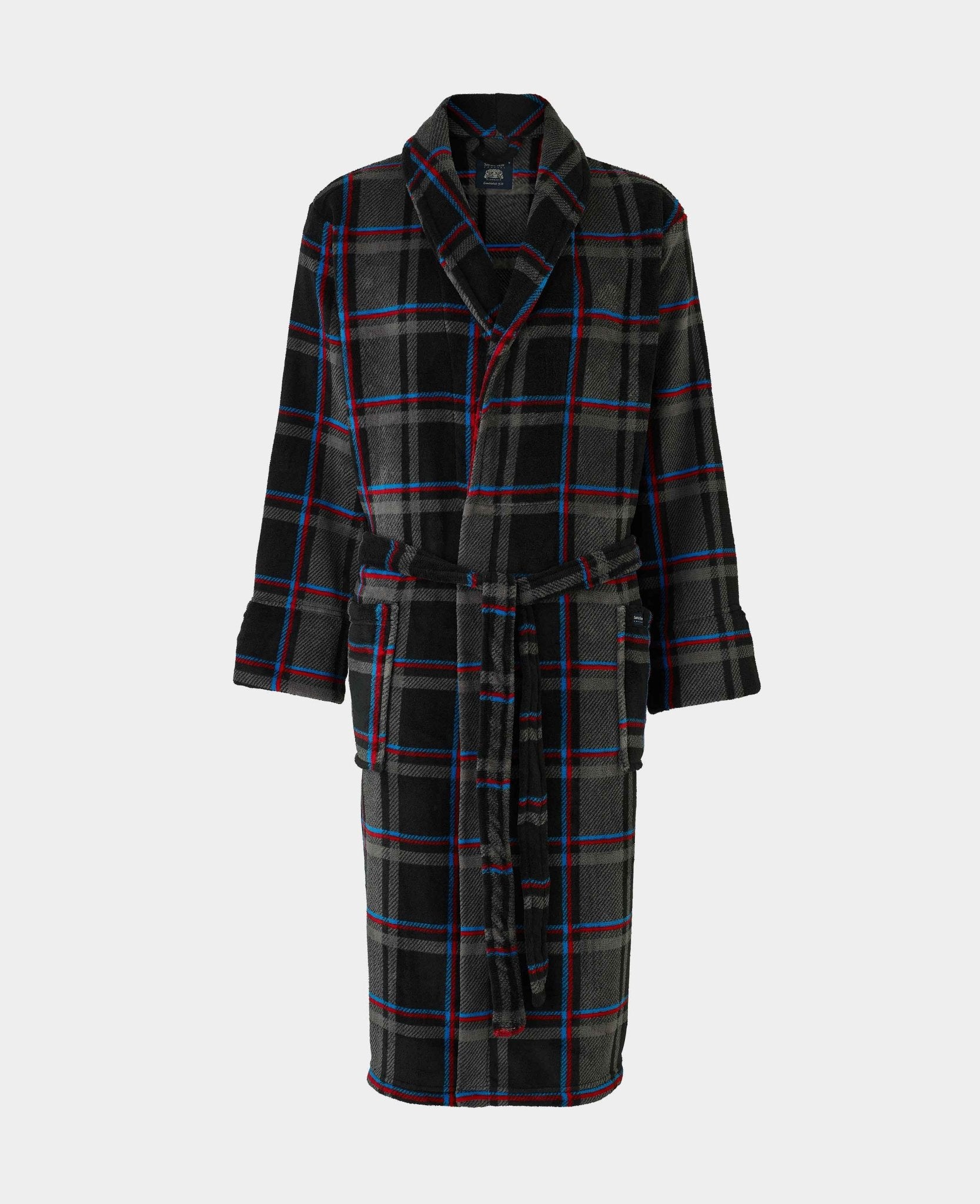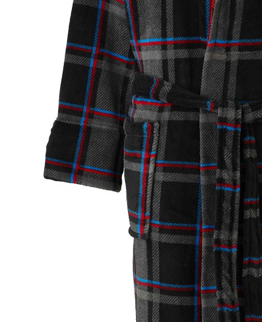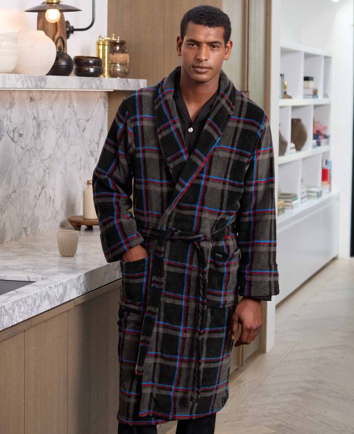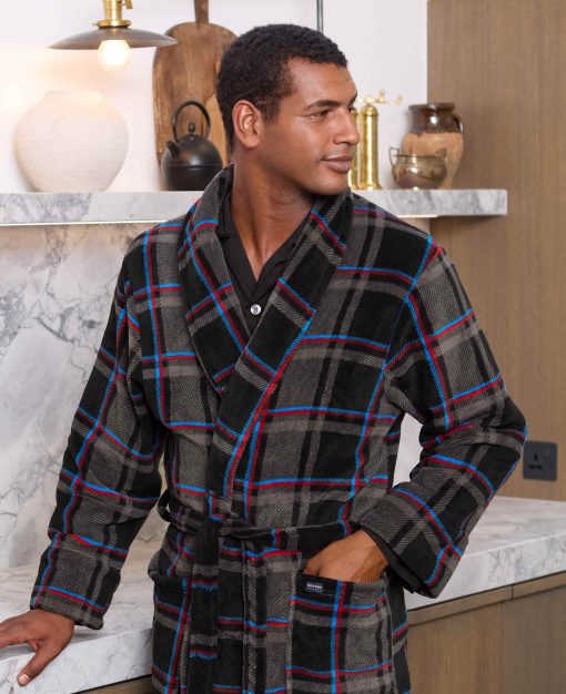 Wrap yourself in cosy comfort with our blue multi check fleece dressing gown, designed to keep you warm without weighing you down. Made from lightweight fleece, it offers a luxuriously soft feel with plenty of warmth – perfect for lazy mornings or relaxing evenings. The classic multi check pattern brings a timeless touch, while two handy patch pockets and a back neck hanging loop make it as practical as it is snug.