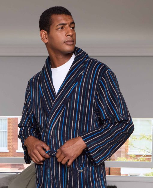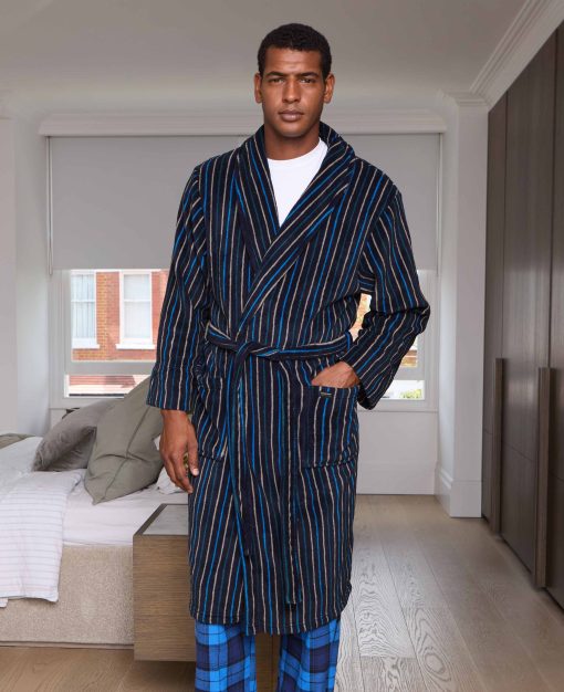 Brighten up your downtime with our multi stripe fleece dressing gown, combining eye-catching style with unbeatable comfort. Made from lightweight fleece, it’s soft, breathable and surprisingly warm, perfect for year-round lounging without the bulk. The bold stripe design adds a playful twist, while two patch pockets and a back neck hanging loop offer everyday practicality.