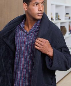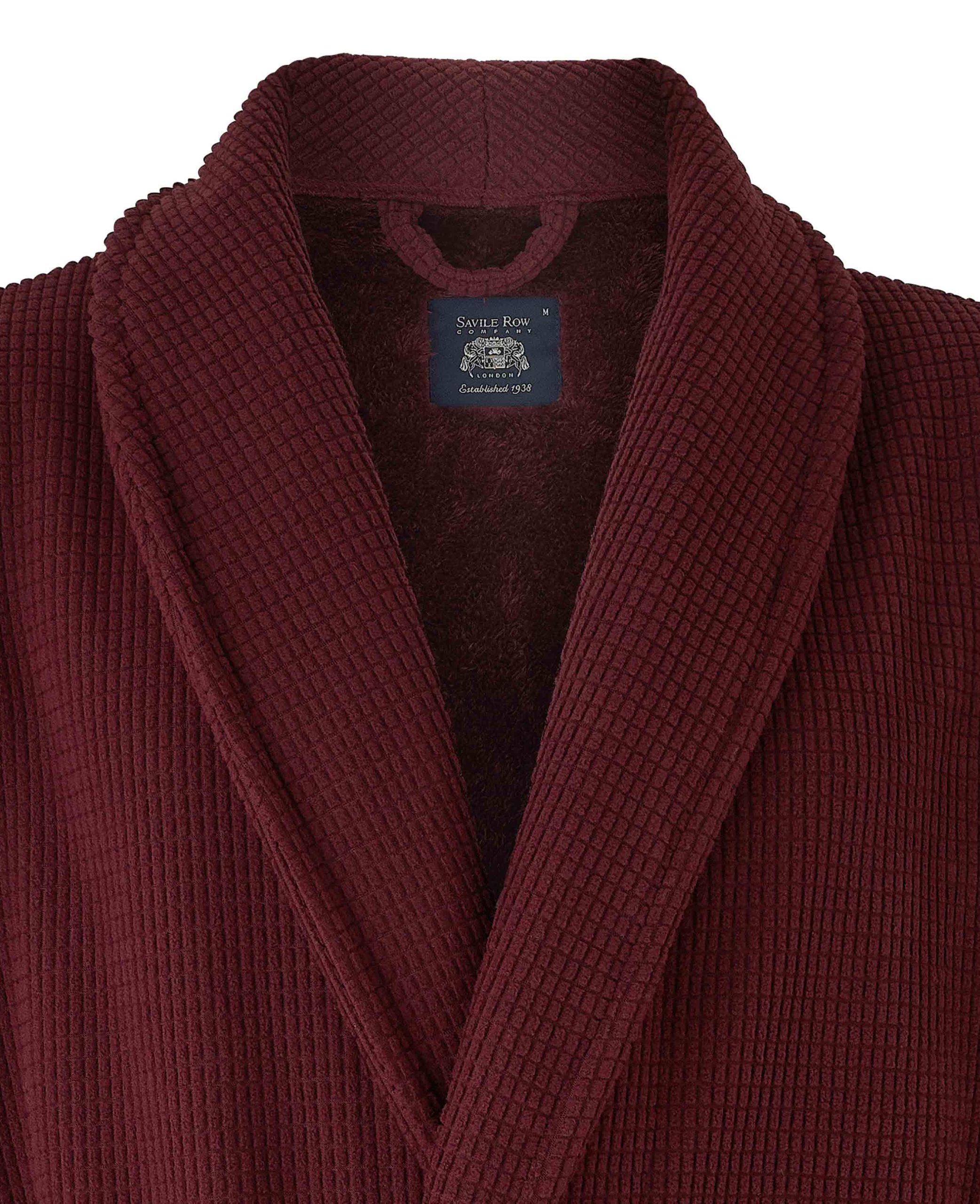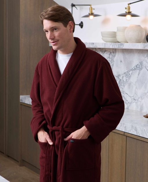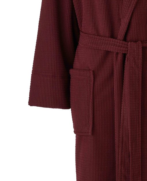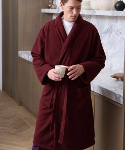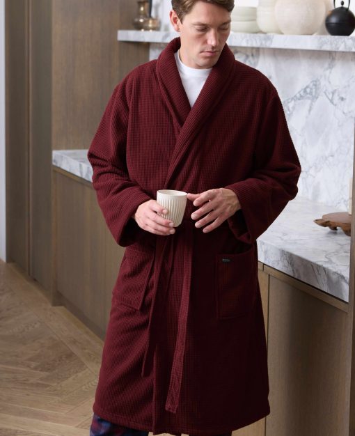 Indulge in the rich, cocooning comfort of our burgundy waffle dressing gown, the perfect companion for chilly days and cosy nights. Made from a plush, heavyweight fabric with a double-faced design, it pairs a textured waffle outer with a soft, fleecy inner layer that feels wonderfully warm. It’s designed for maximum cosiness, ideal for winter lounging or slow, indulgent mornings. While it doesn’t absorb moisture like cotton, it offers a warm, comforting touch you’ll want to live in. With two roomy patch pockets, a self-tie waist and a handy back neck hanging loop, it blends comfort and practicality with effortless style. Machine washable and made to last. Wash colours separately