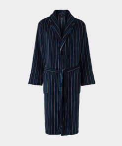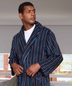 Savile Row Men’s Nightwear Blue Multi Stripe Super Soft Fleece Dressing Gown | Blue