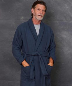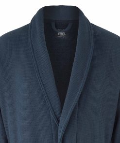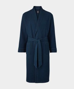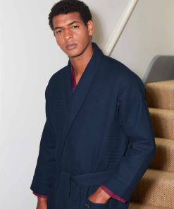 Savile Row Men’s Nightwear Navy Cotton Waffle Dressing Gown With Terry Cotton Lining | Navy