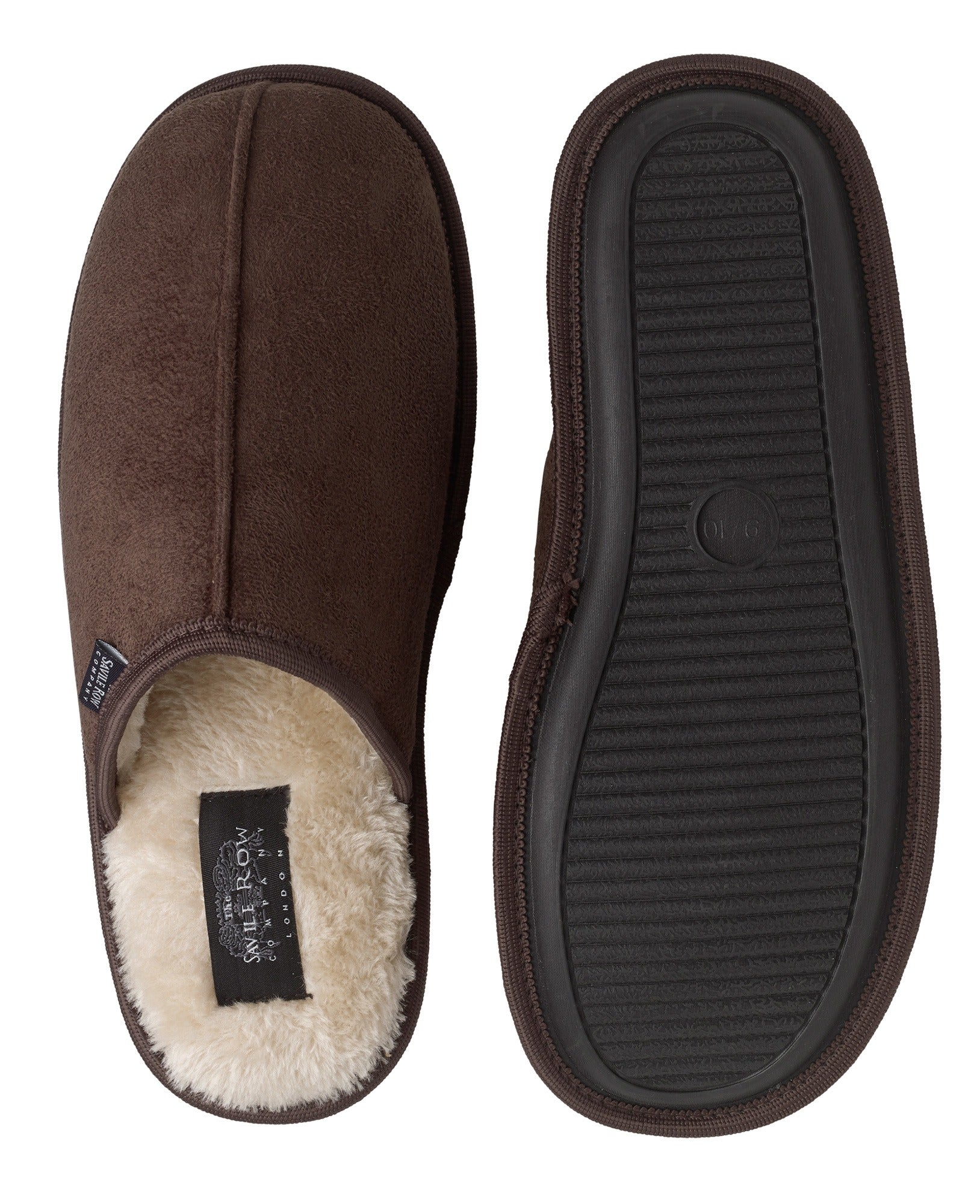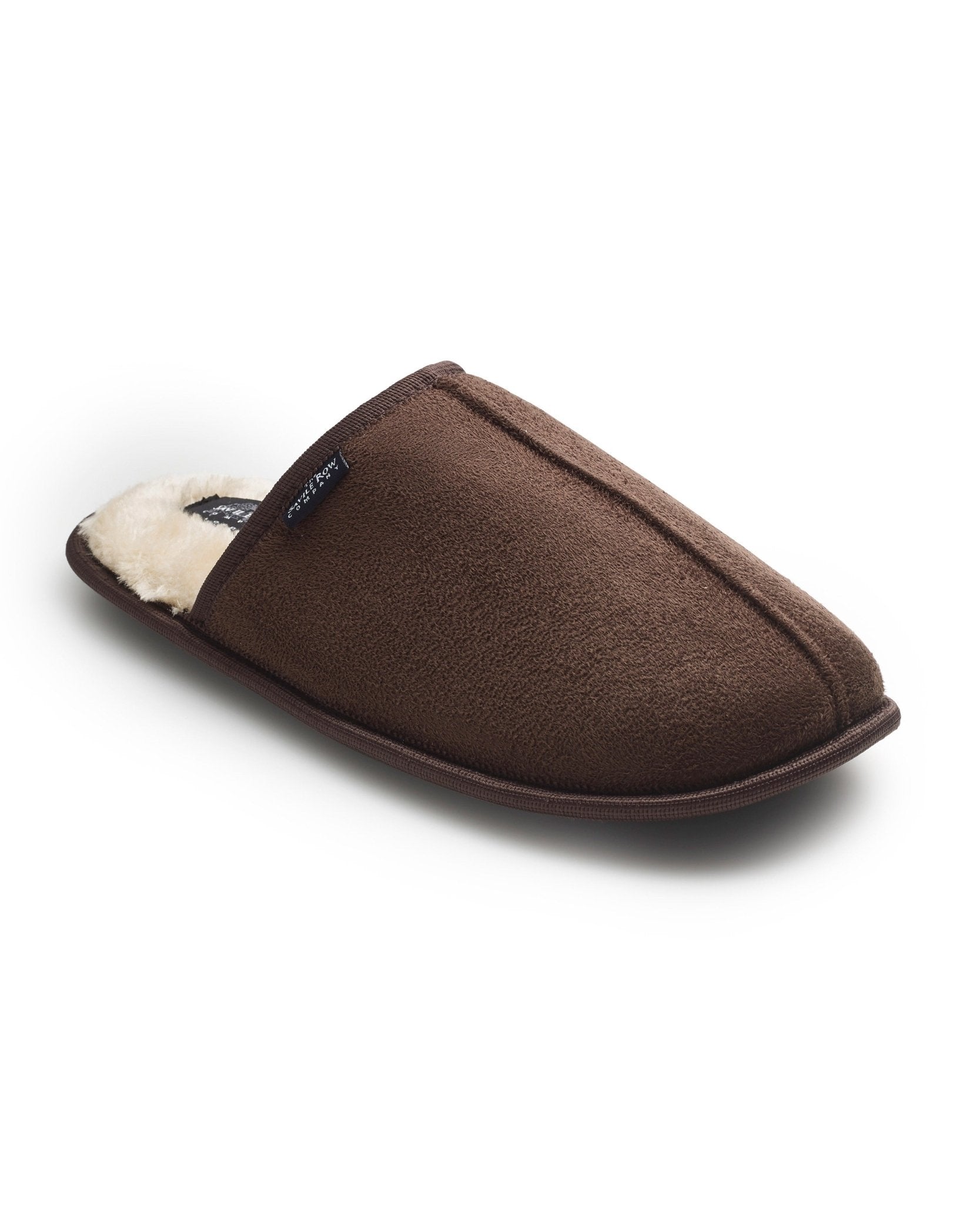 Great for lounging at home, these black mule slippers are hardwearing yet irresistibly soft. Crafted from microsuede, they feature cosy lining and non-slip rubber soles.