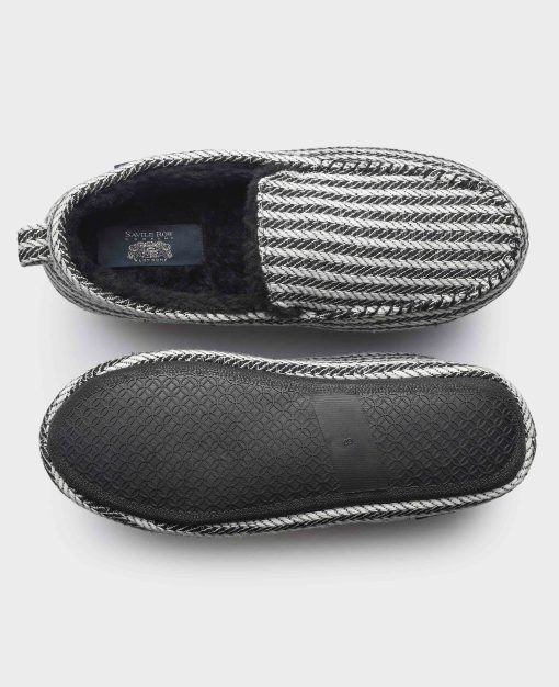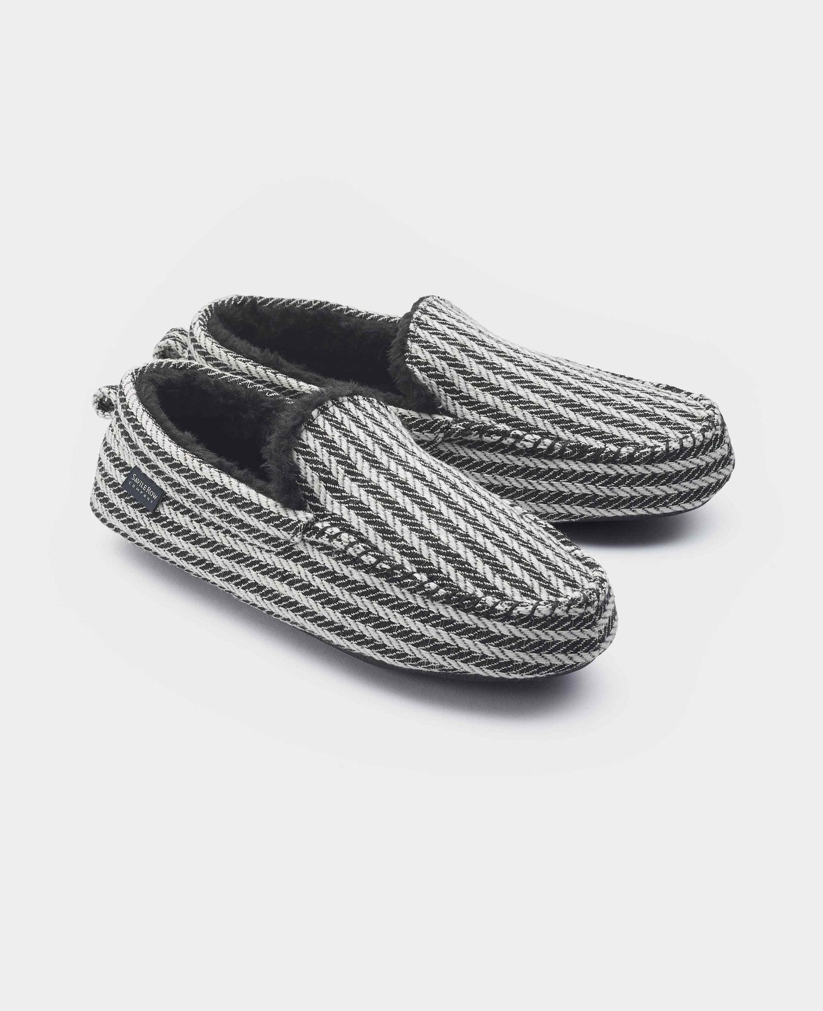 Treat your feet, or someone special, to the ultimate in cosy luxury with our grey/black herringbone moccasin slippers. Featuring a classic moccasin design with a handy pull tab for easy on and off, they combine a stylish grey and black herringbone outer with a sumptuous black faux fur lining that wraps your feet in warmth and softness. The lightweight rubber sole lets you move comfortably, while the easy-clean fabric ensures they stay looking fresh. Perfect as a thoughtful gift, these slippers bring everyday indulgence to anyone’s homewear collection.