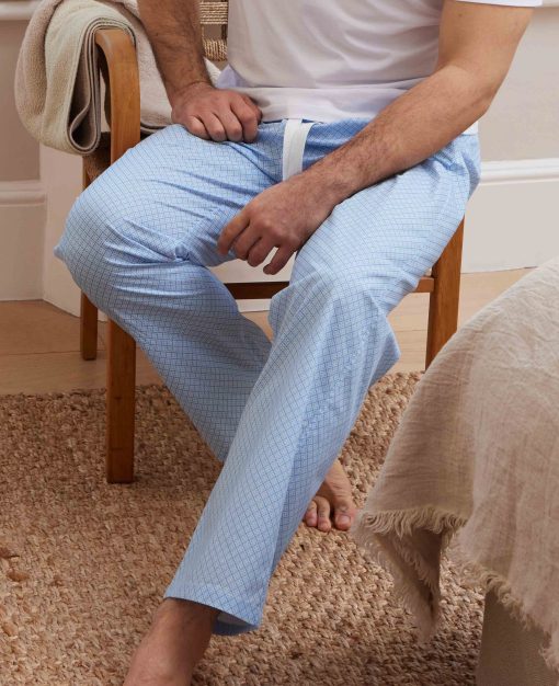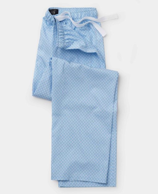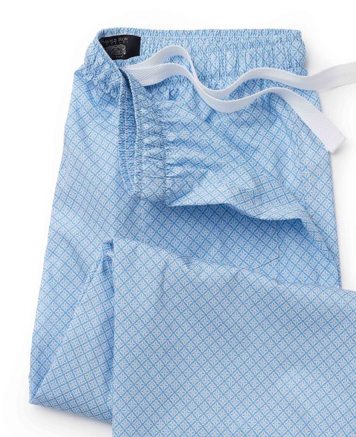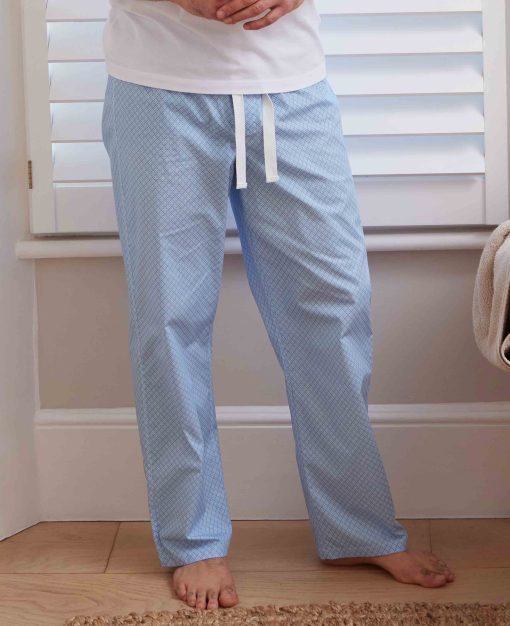 Savile Row Men’s Nightwear Light Blue Cotton Foulard Print Lounge Pants | Light
