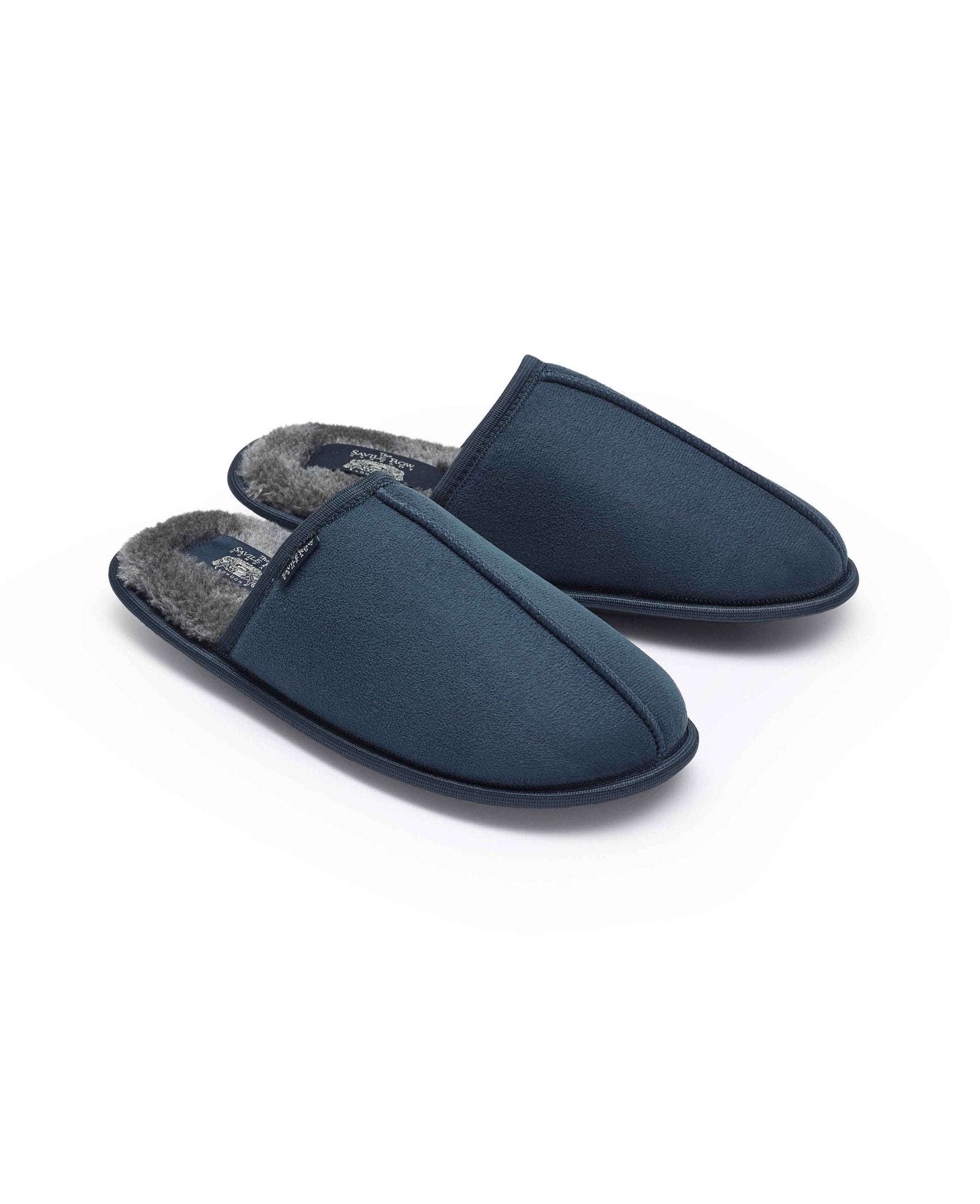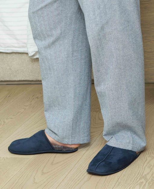 Our navy mule slippers have been crafted from soft microsuede and finished with cosy lining. The non-slip rubber soles ensure maximum grip on slippery flooring.