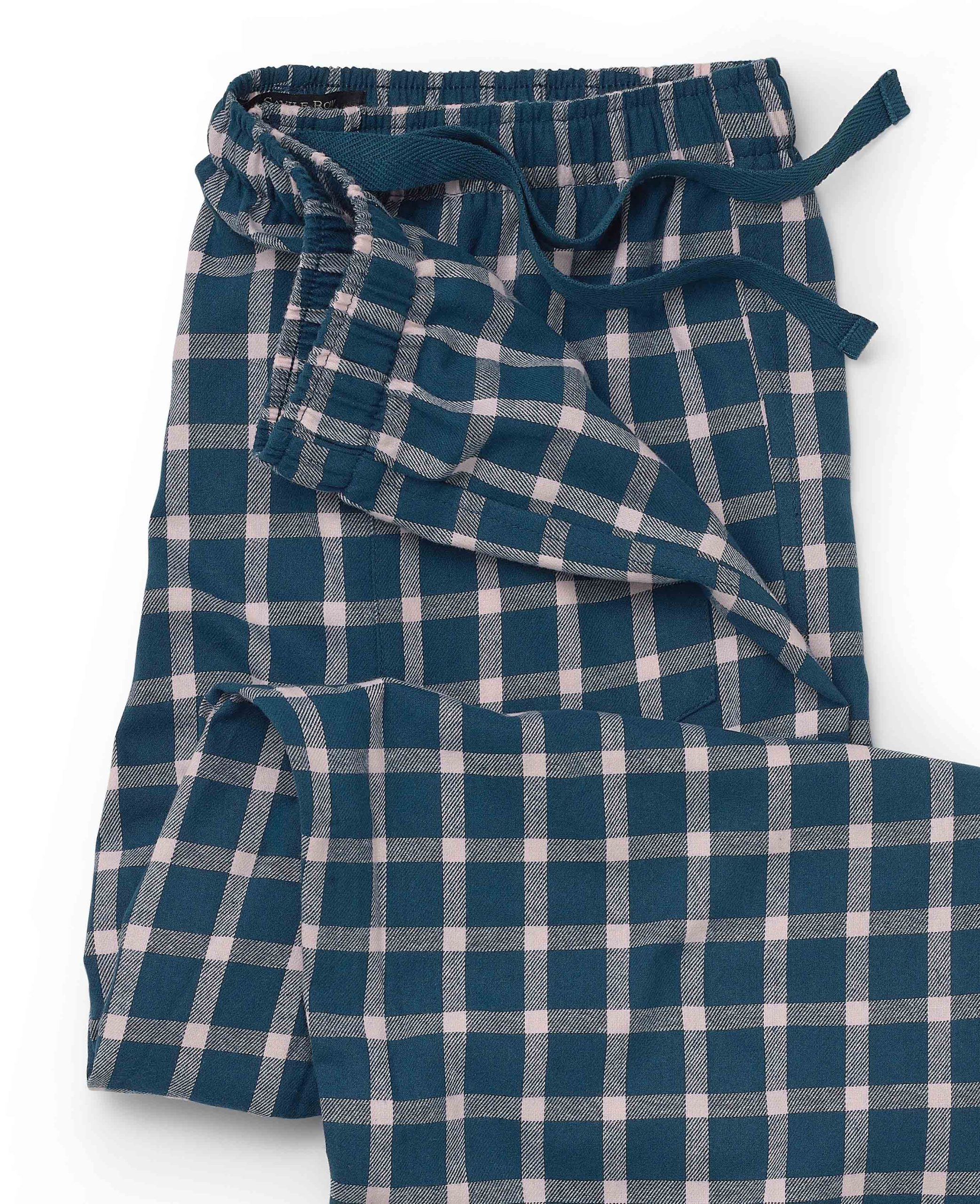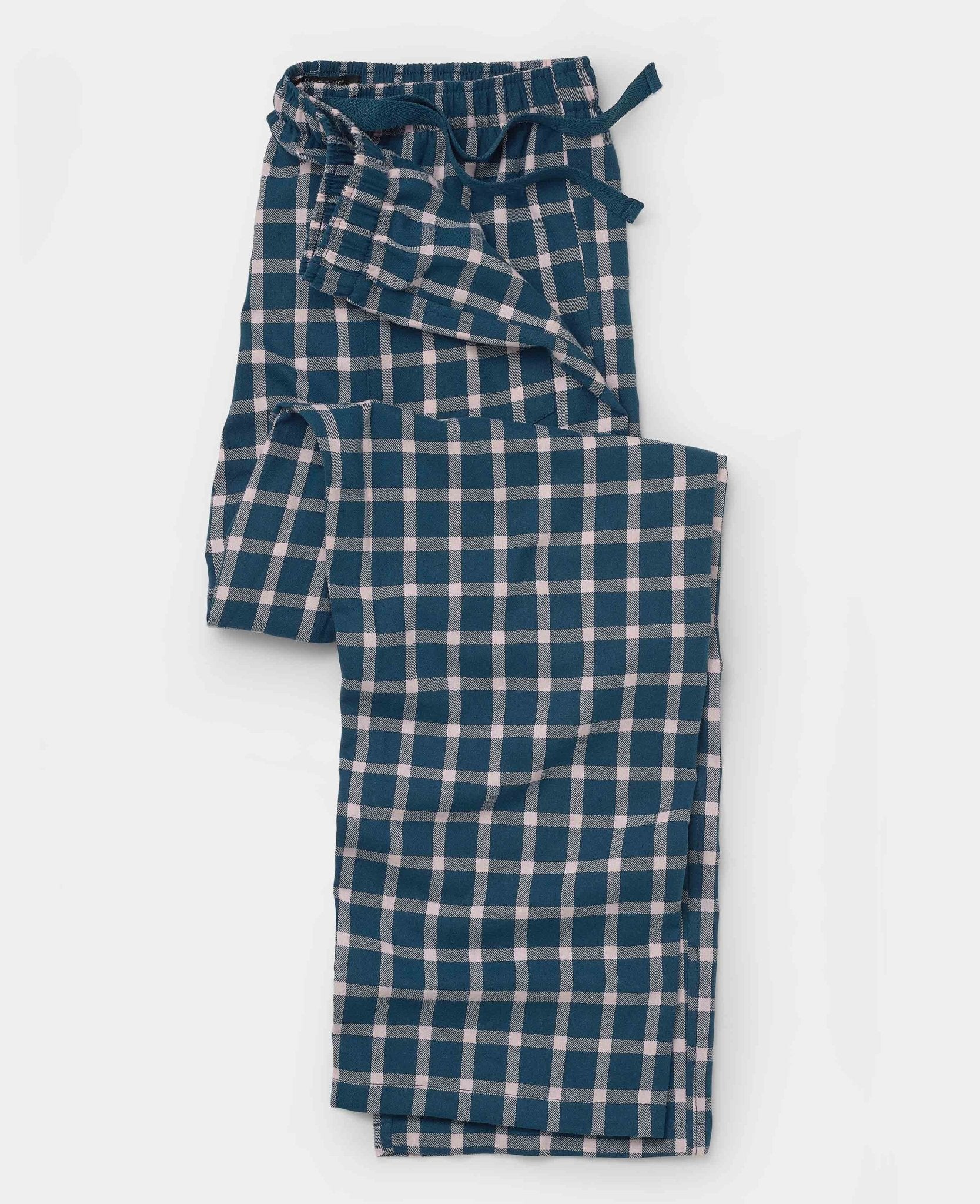 Savile Row Men’s Nightwear Navy Pink Check Brushed Cotton Lounge Pants | Navy