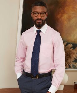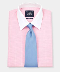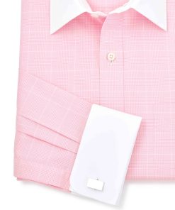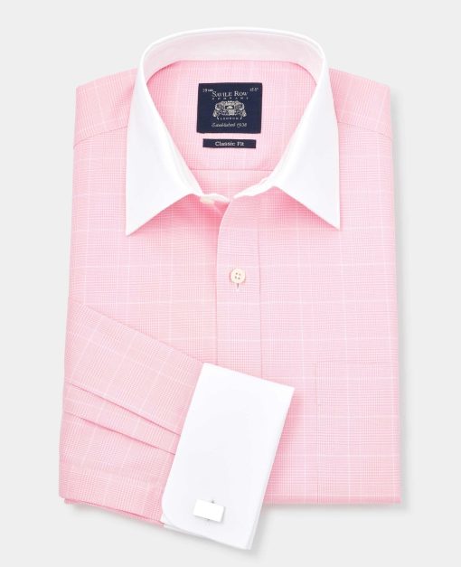 Savile Row Men’s Pink Prince Of Wales Check Classic Fit Contrast Collar Formal Shirt With White Collar & Cuffs | Pink