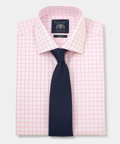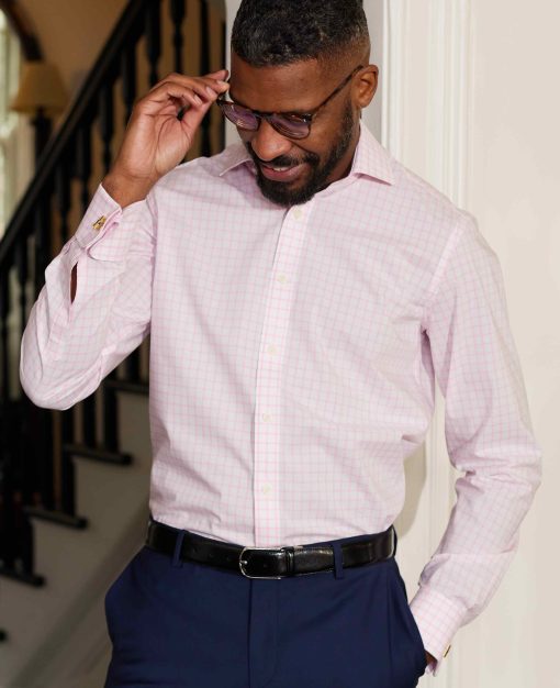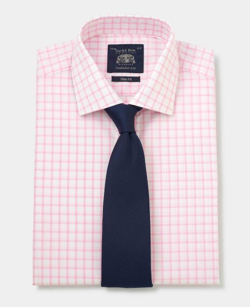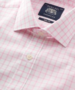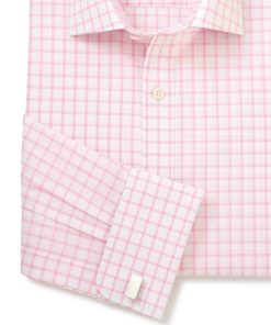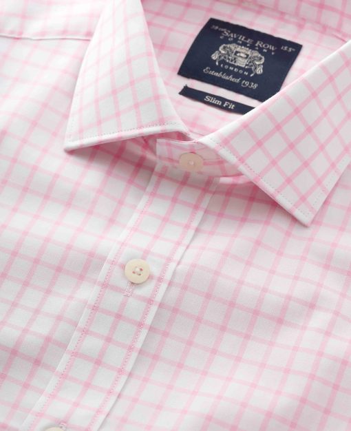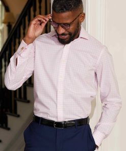 Savile Row Men’s Pink White Check Slim Fit Shirt – Double Cuff | Pink