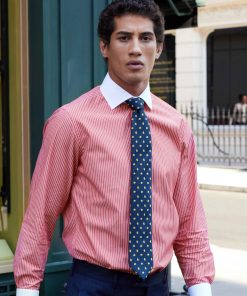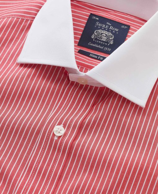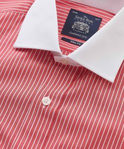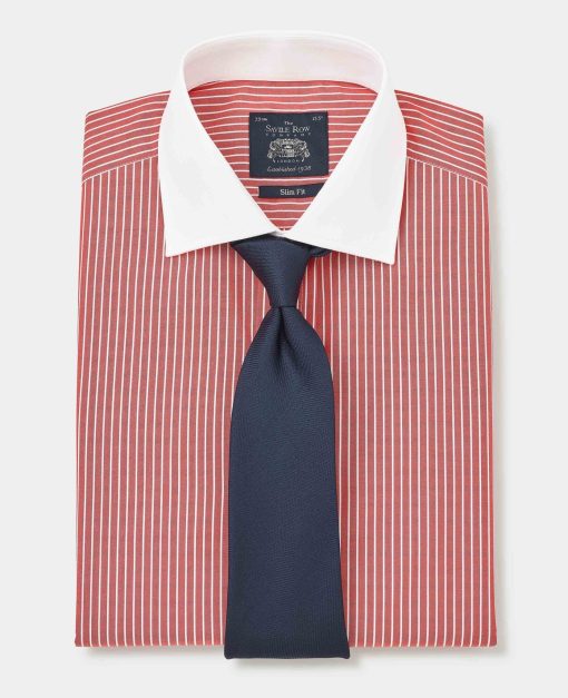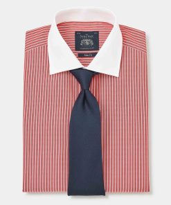 Cut to a slim silhouette, this formal shirt is decorated with bold red and white stripes. It has been crafted from pure cotton and given an easy-iron finish which will help save precious time in the mornings. We think it looks particularly dashing teamed with a navy suit and black Derby shoes.