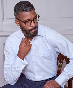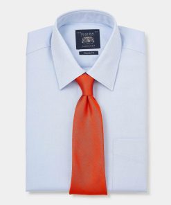 Crafted from premium textured cotton with a refined herringbone weave, this sky-blue formal shirt offers both sophistication and subtle depth. The breathable fabric ensures all-day comfort, while the herringbone pattern adds a touch of understated elegance. Designed in a classic fit for a roomy, relaxed feel, it features double cuffs for a polished look and a curl-resistant collar that maintains its sharp shape. Easy to iron for effortless maintenance, this shirt is a timeless wardrobe essential for the modern gentleman.