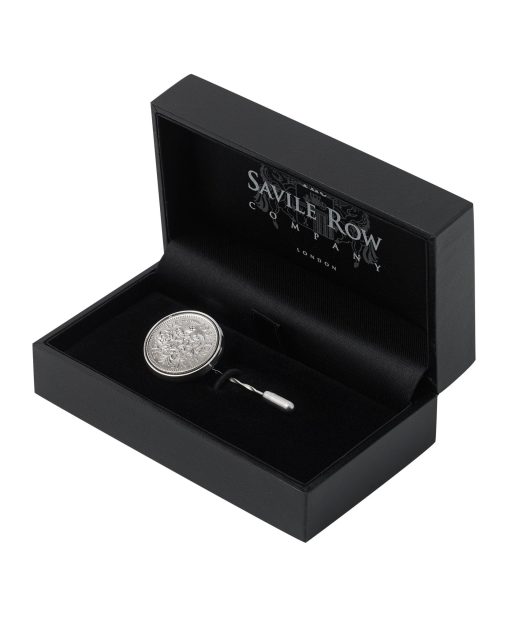 An elegant option for sharp suits, this sterling silver lapel pin could bring you luck at the races. Showcases a lucky sixpence and Savile Row Company branding, it would also make a fine gift for a silver wedding anniversary.