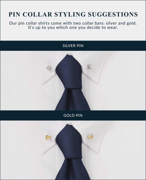 Our popular pin collar shirt in a spacious classic fit. Crafted from 100% cotton with a curl-resistant collar and elegant double cuffs. Perfect for special occasions such as wedding or awards evenings. Take your pick from a gold or silver-tone collar bar (we’ll send you both).
